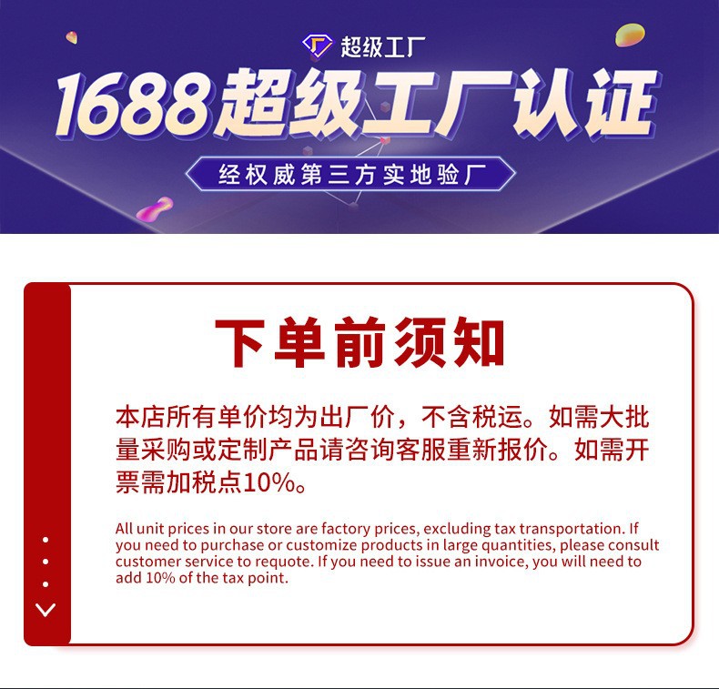 1688온라인 사이트에서 검색된 상품입니다. 알리타플에서는 상품검색/현지구매(구매대행)/국제배송 업무만 제공해드립니다. 해당 상품의 품질 및 상태에 대해서는 확인해 드릴 수 없고 해당 물건이 입고가 된 후에 검수과정을 거쳐야 확인이 가능합니다.