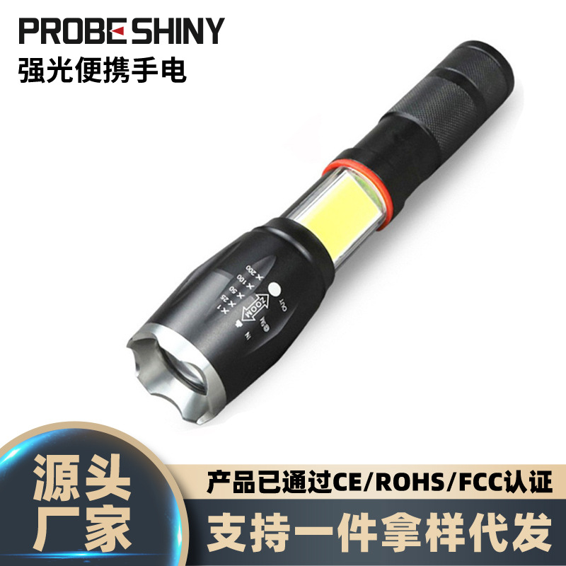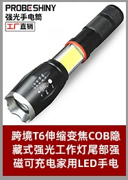 크로스 보더 T6 텔레스코픽 줌 COB 숨겨진 강한 조명 작업 등 꼬리 강한 자기 충전식 가정용 LED 손전등스토어 가기