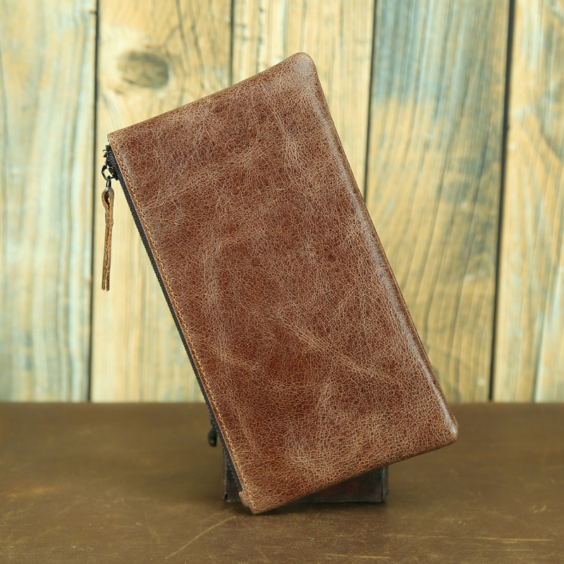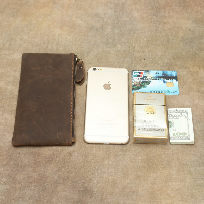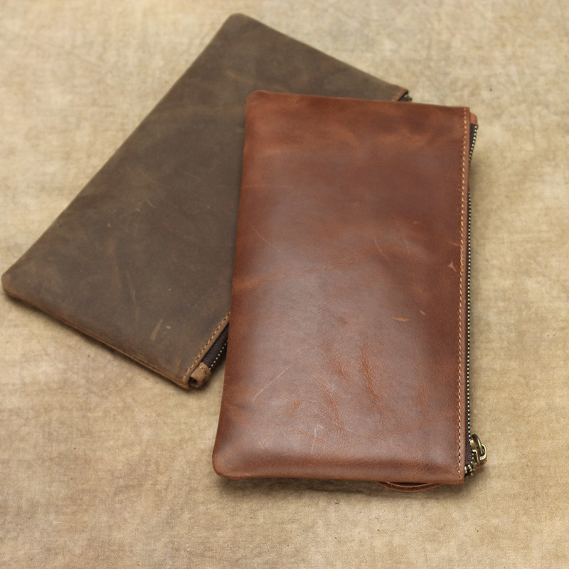 미니멀리스트 미친 말 가죽 남성용 소가죽 휴대 전화 가방 긴 레트로 울트라 씬 여성용 정품 가죽 지갑 일본과 한국 핸드백스토어 가기