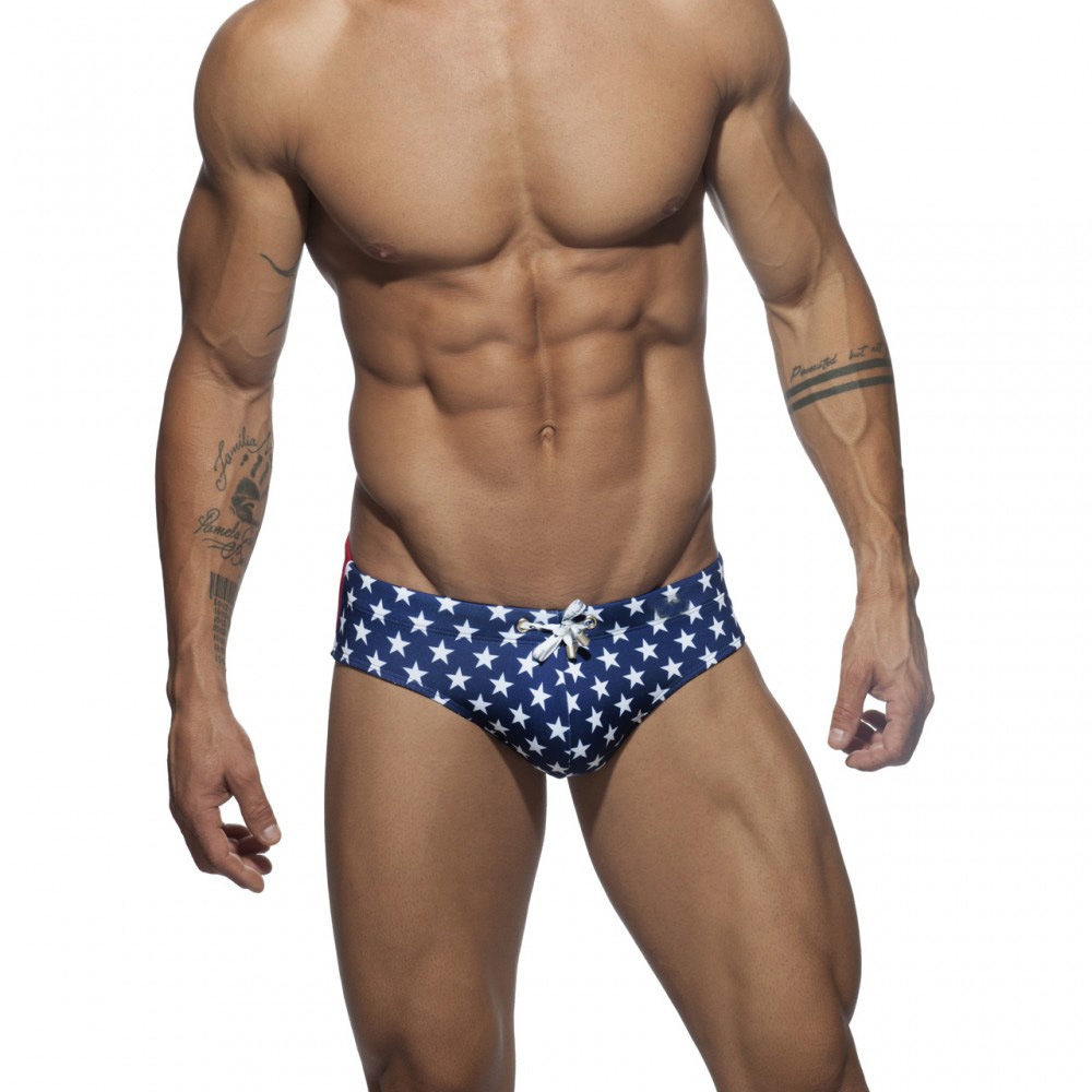 새로운 남자의 삼각형 수영 트렁크 컬러 매칭 스타 인쇄 섹시한 스트레치 대외 무역 해변 비키니 팬티 남자스토어 가기