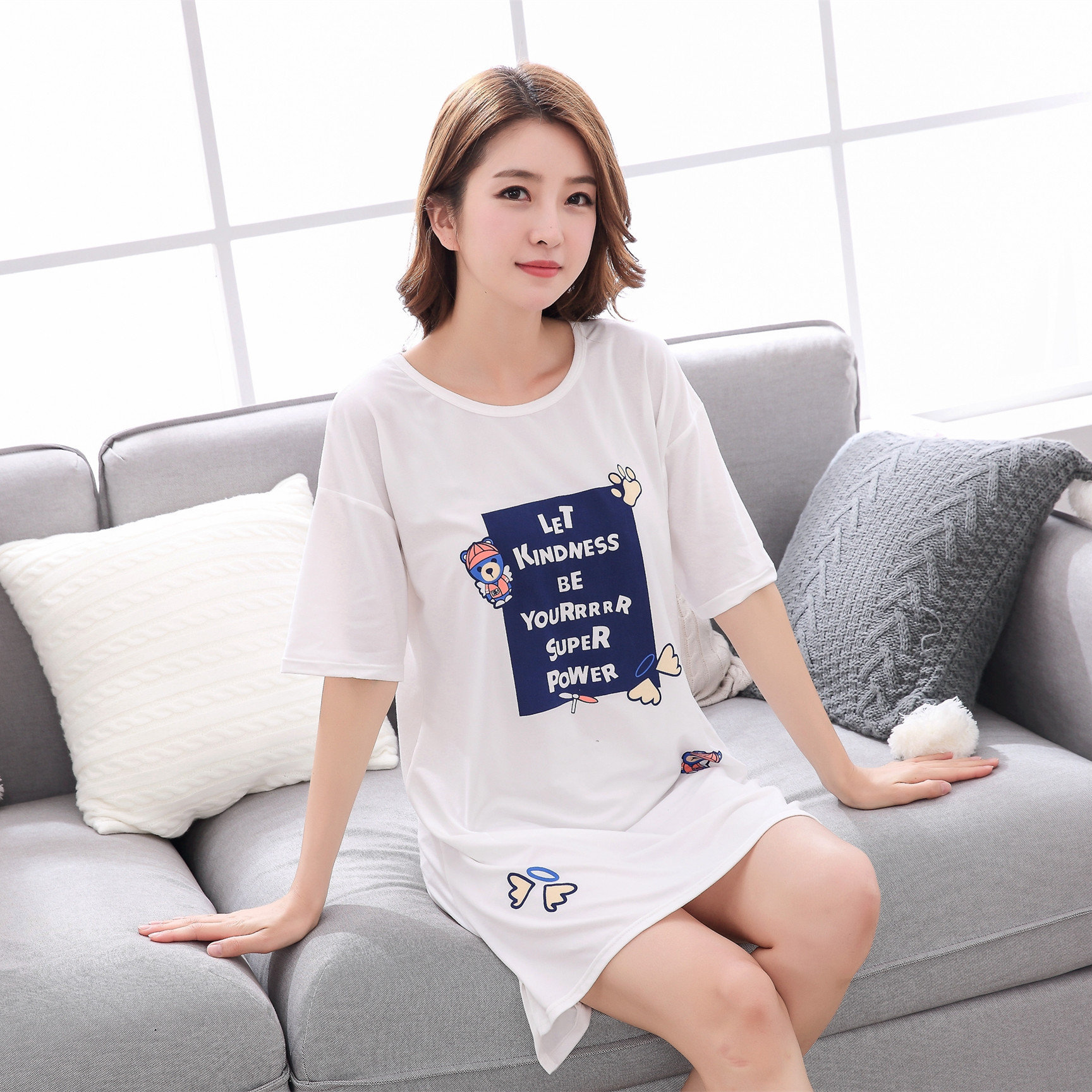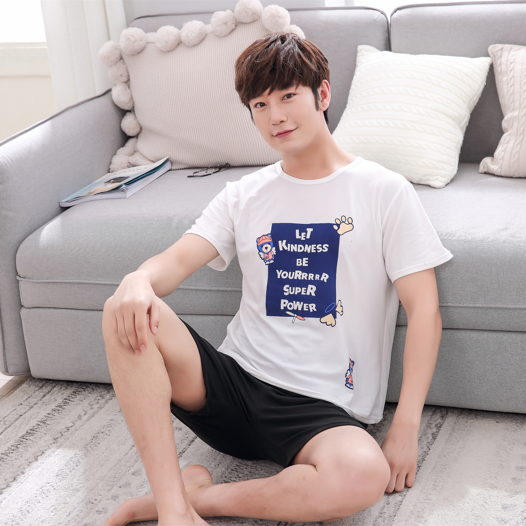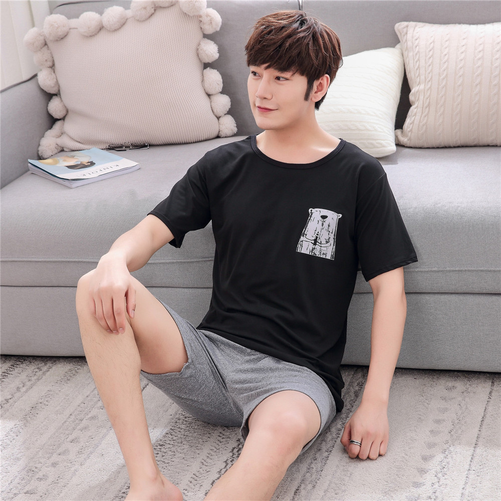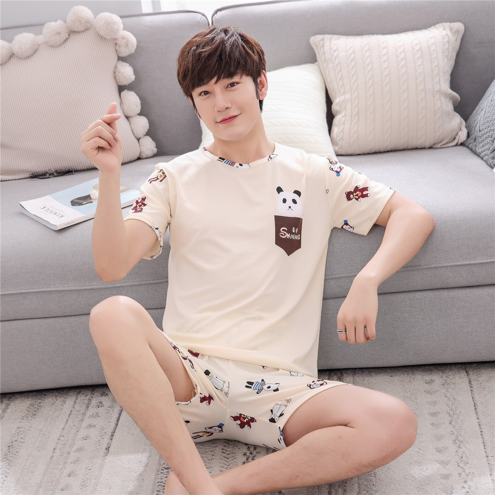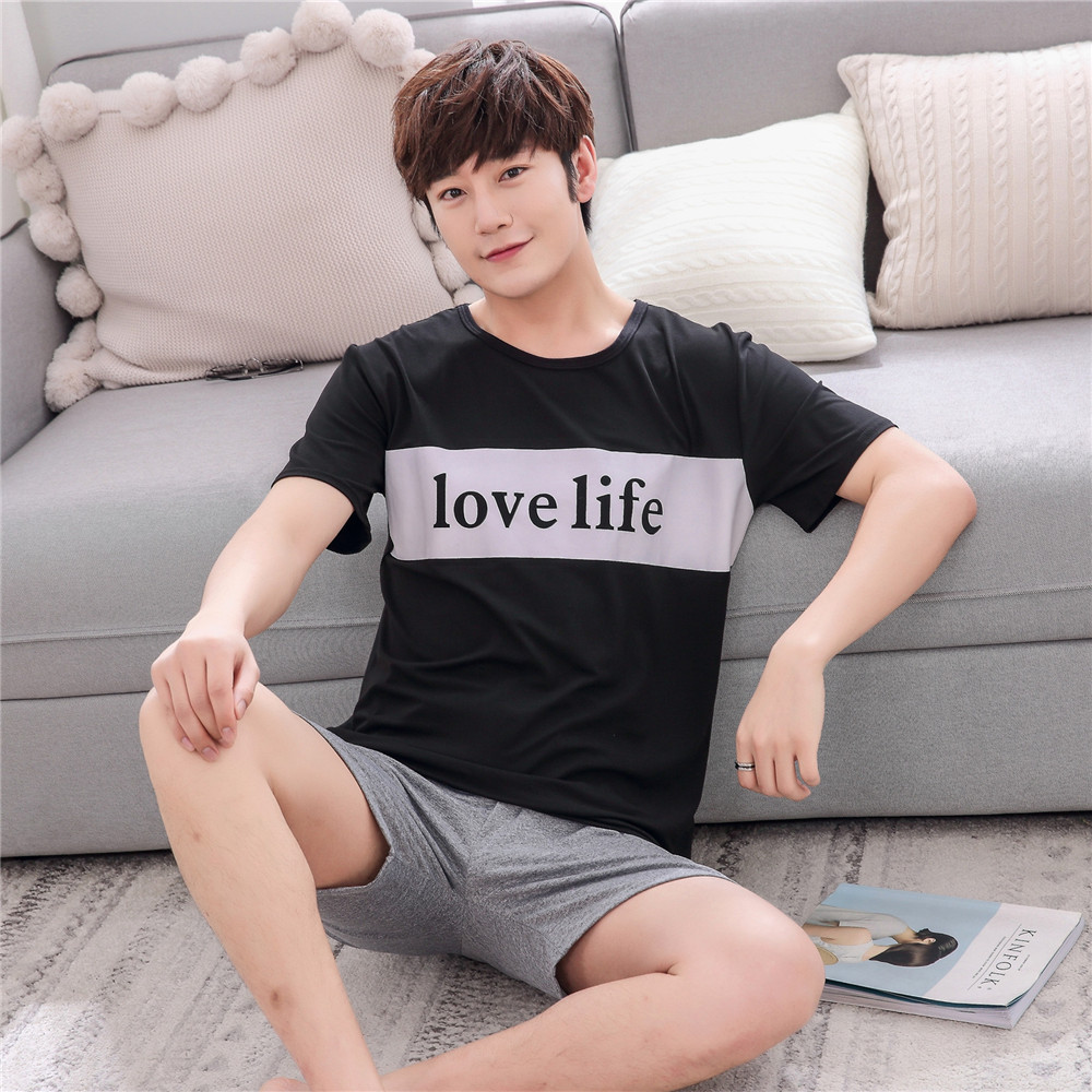 한국식 커플 잠옷 반팔 느슨한 잠옷 캐주얼 커플 세트 학생 가정복 여름스토어 가기