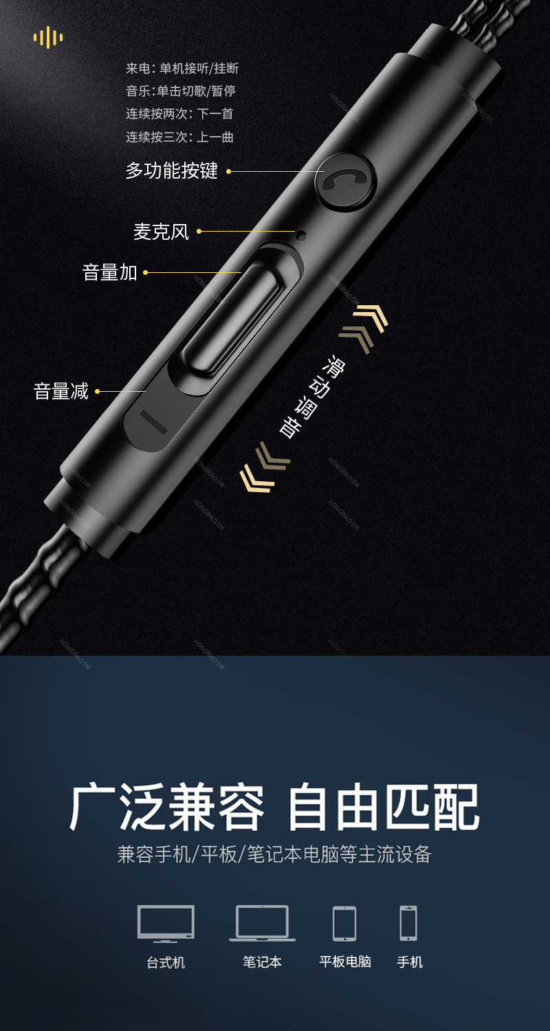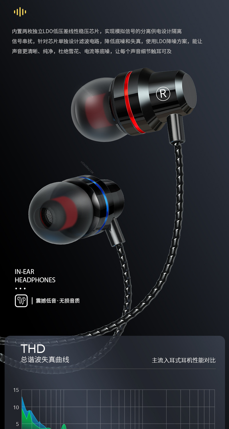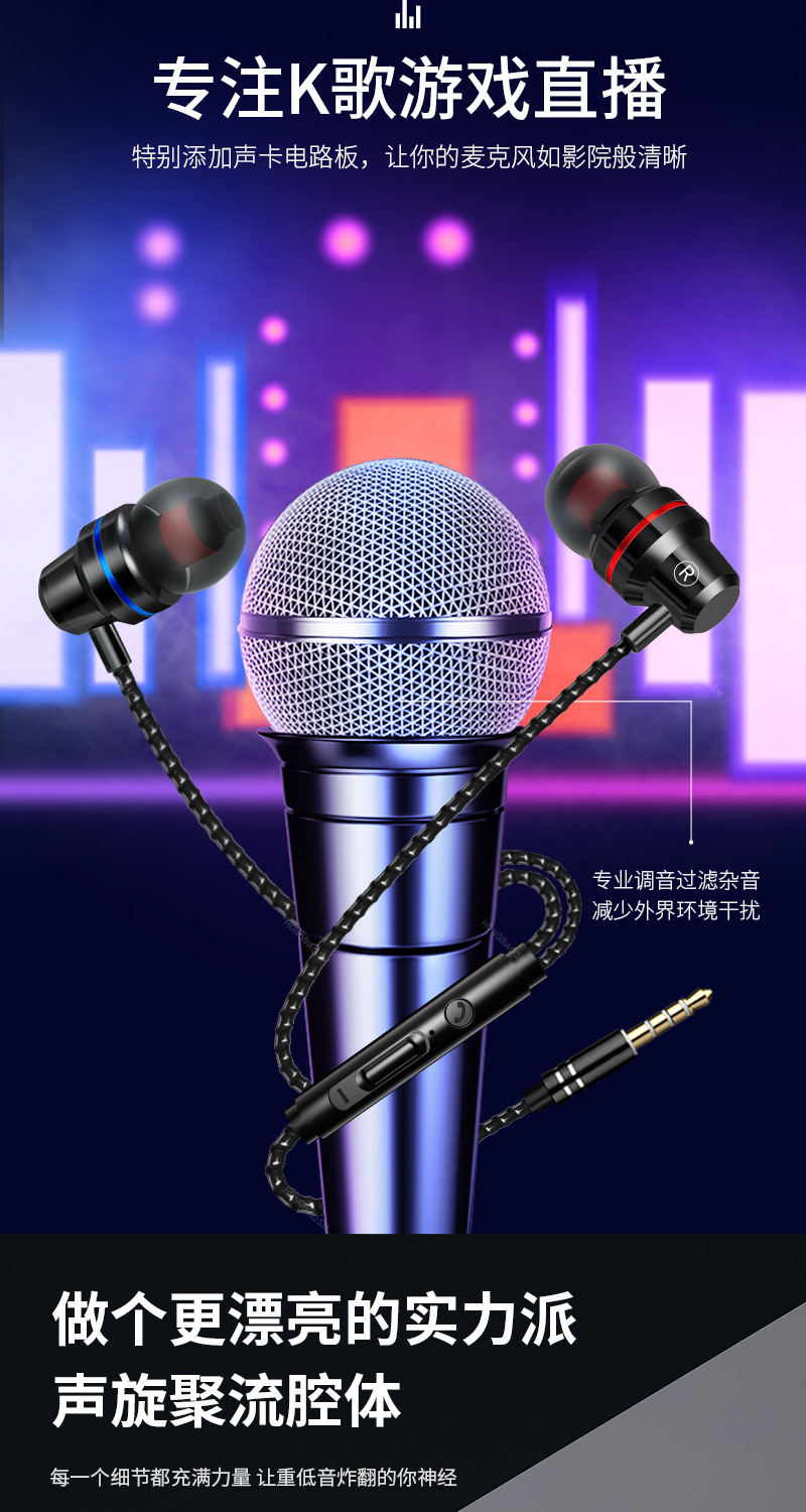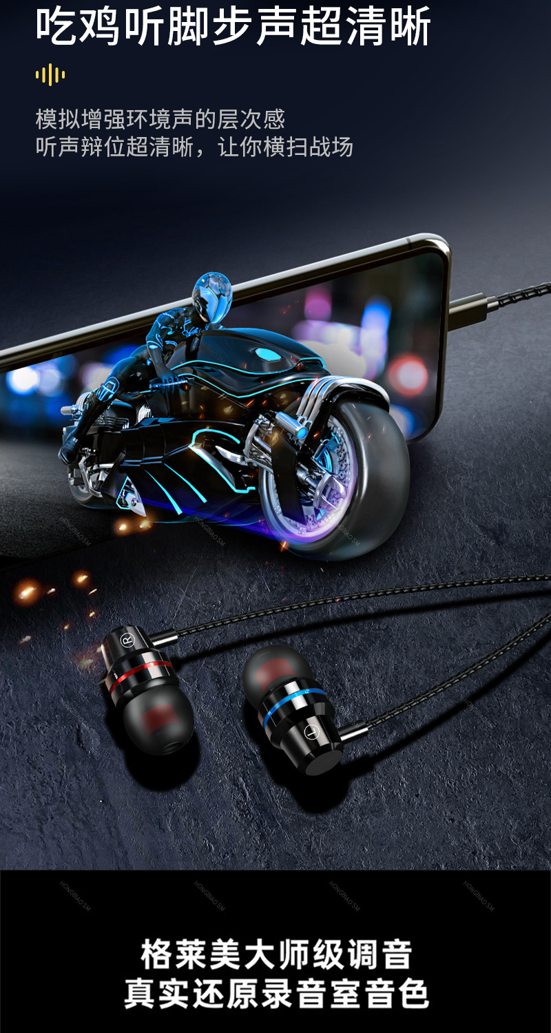 애플, 화웨이, 샤오미, 오포에 적합한 이어폰, 인이어형 중저음 강화, 유선 이어폰, 노래방용 휴대폰 이어폰
