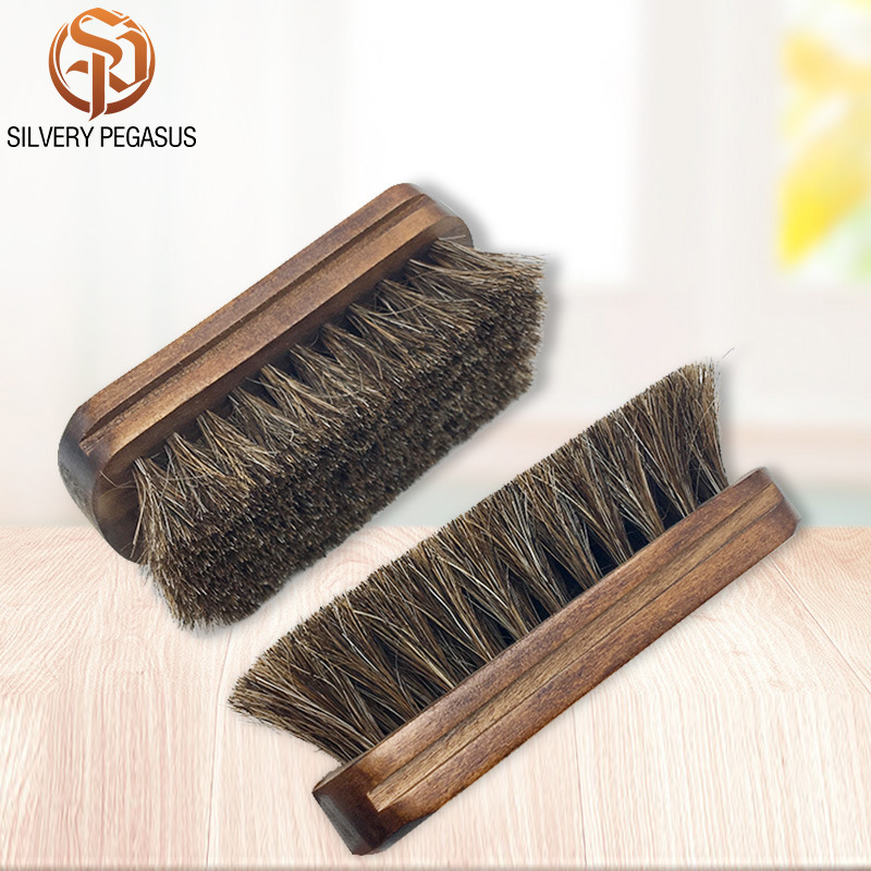 부드러운 헤어 브러시 다크 브라운 작은 사각형 매일 필수품 갈기 나무 신발 브러시 로터스 나무 가죽 신발 먼지 브러시 말 머리 신발 브러시
