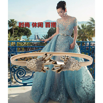 크로스 보더 유럽과 미국 여성 벨트 여성의 캐주얼 장식 원피스 재고 금속 탄성 허리 체인스토어 가기