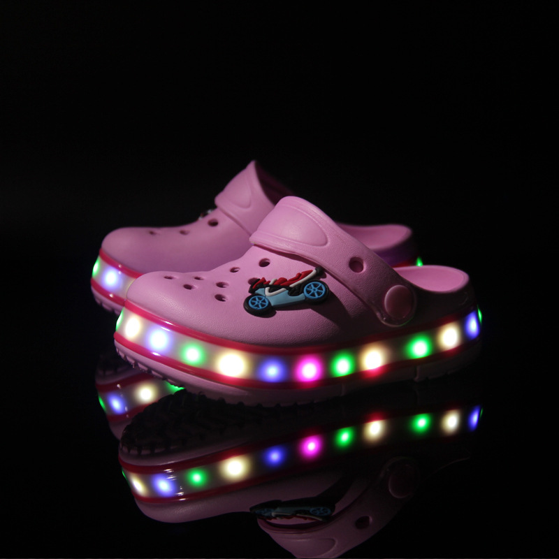 LED 조명 신발 자동차 해변 구멍 어린이 신발 욕실 어린이 샌들 새로운 해변 신발 EVA 만화 아기 신발