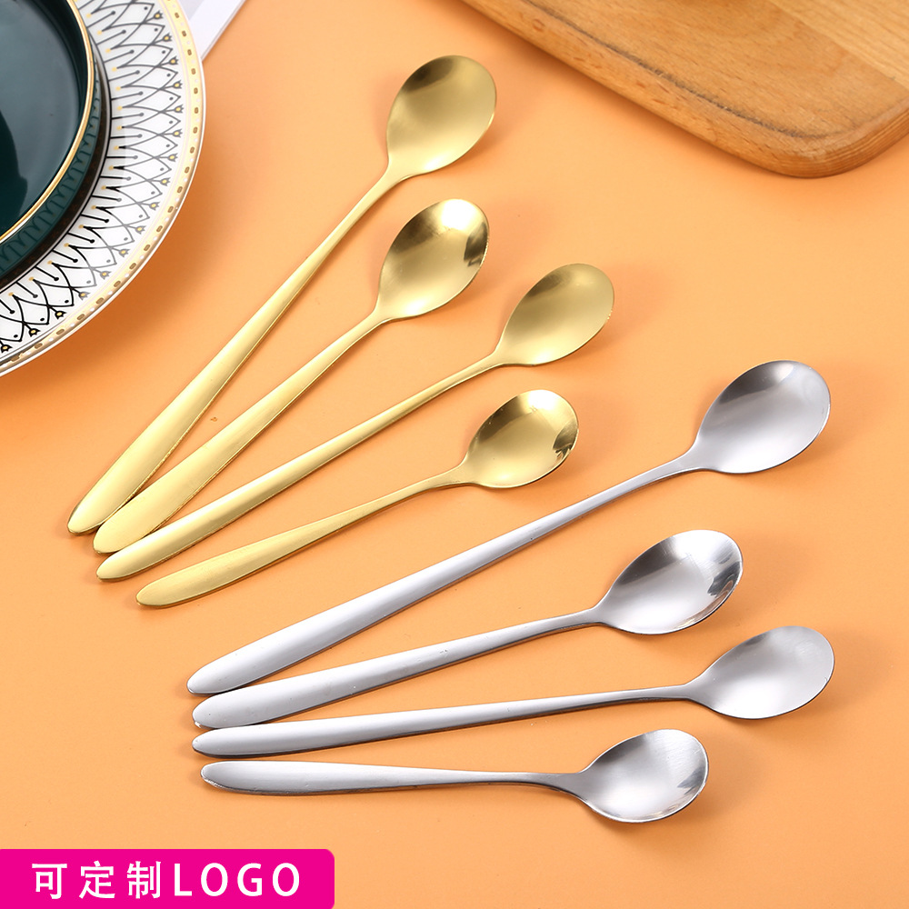 가벼운 몸 뾰족한 꼬리 스테인레스 스틸 긴 손잡이 아이스 스푼 커피 믹싱 스푼 일본과 한국의 금 작은 스푼 머그 선물 로고