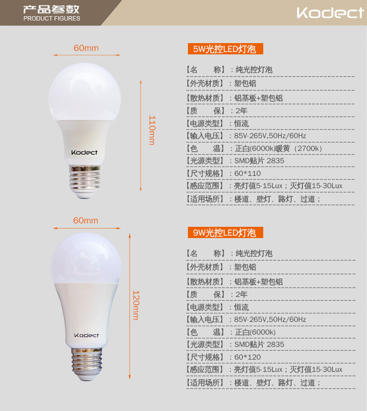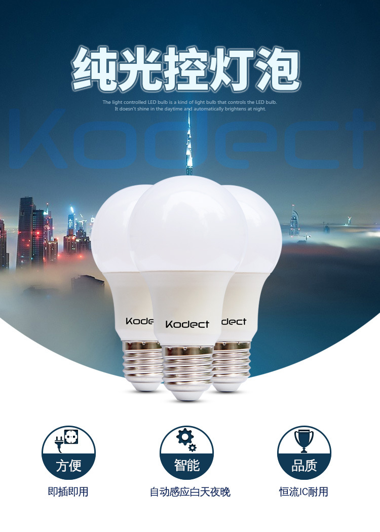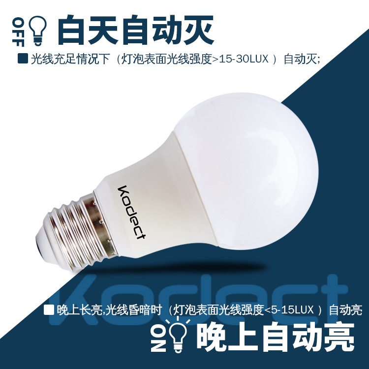 순수한 조명 제어 LED 전구 지능형 조명 유도 조명 제어 야간 조명이 낮중에는 밝지 않고 밤에는 길다 220V CE 고발광 효율