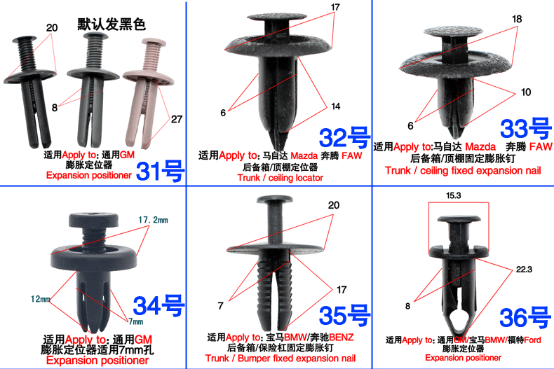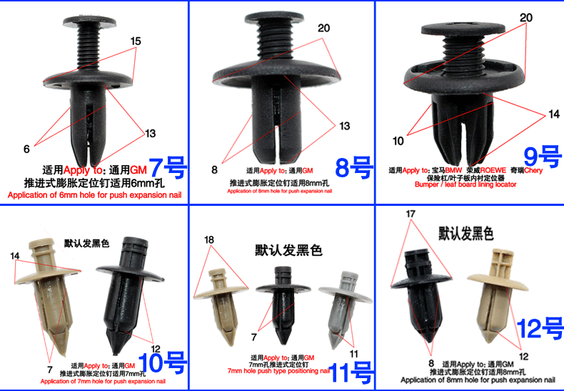 先将需要固定的两板钻孔,然后将此铆钉的下半部分塞入孔内,再将上半部分用力推进下半部分,铆体涨开即可使两板固定。