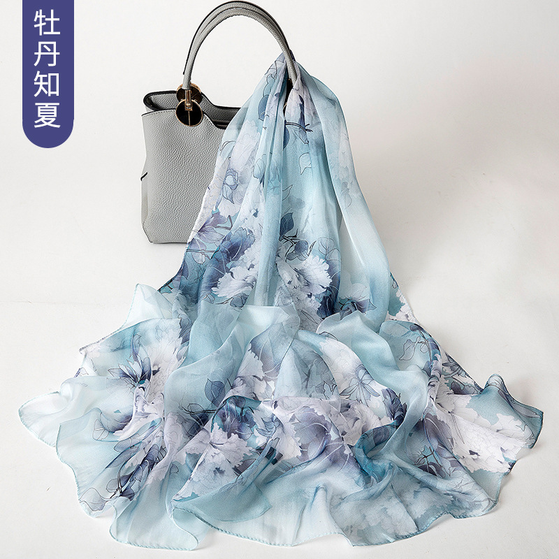 女士100%纯真丝丝巾夏季防晒披肩沙滩巾围巾定制批发桑蚕丝围脖巾