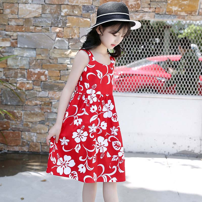 소녀의 조끼 원피스 면 꽃 빅 레드 원피스 한국 스타일 꽃 캐주얼 원피스 조끼 원피스 트렌디 한 성능 원피스