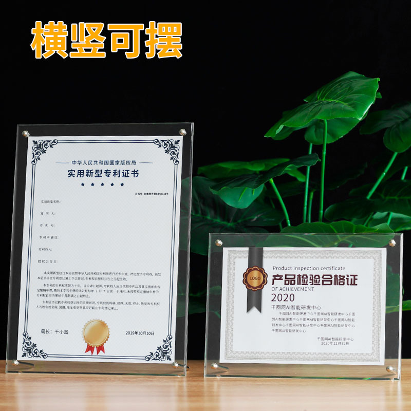 크리스탈 A4 사진 프레임 테이블 A4 명예 인증서 프레임 6 인치 사진 프레임 벽 유리 사진 프레임 인증 인증서 프레임