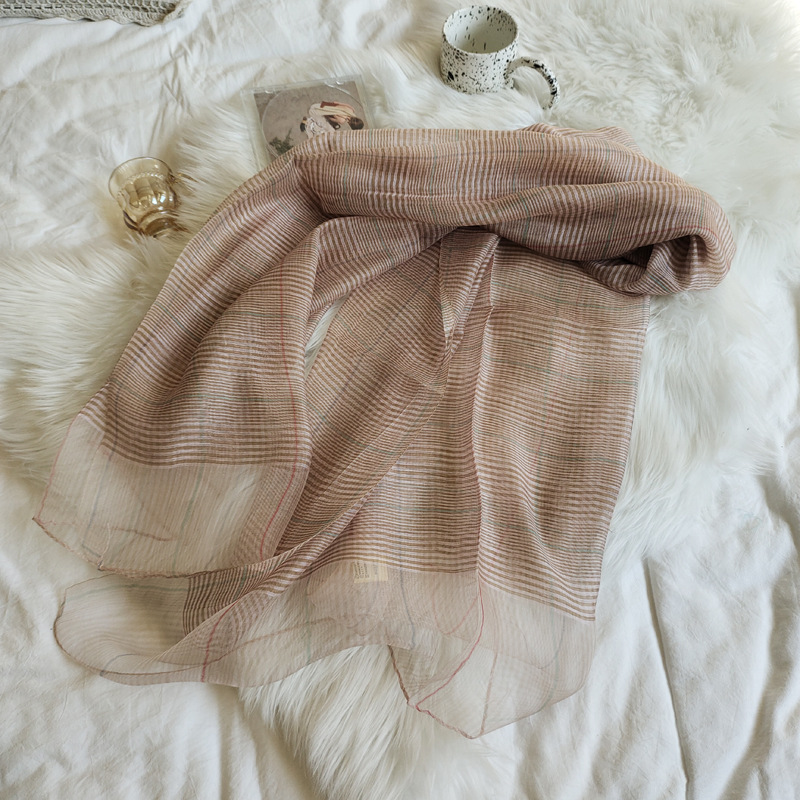 한국식 다용도 격자 무늬 실크 스카프 울 스카프 뽕나무 실크 에어컨 원피스 목도리 긴 비치 타월 봄과 가을