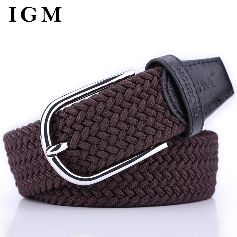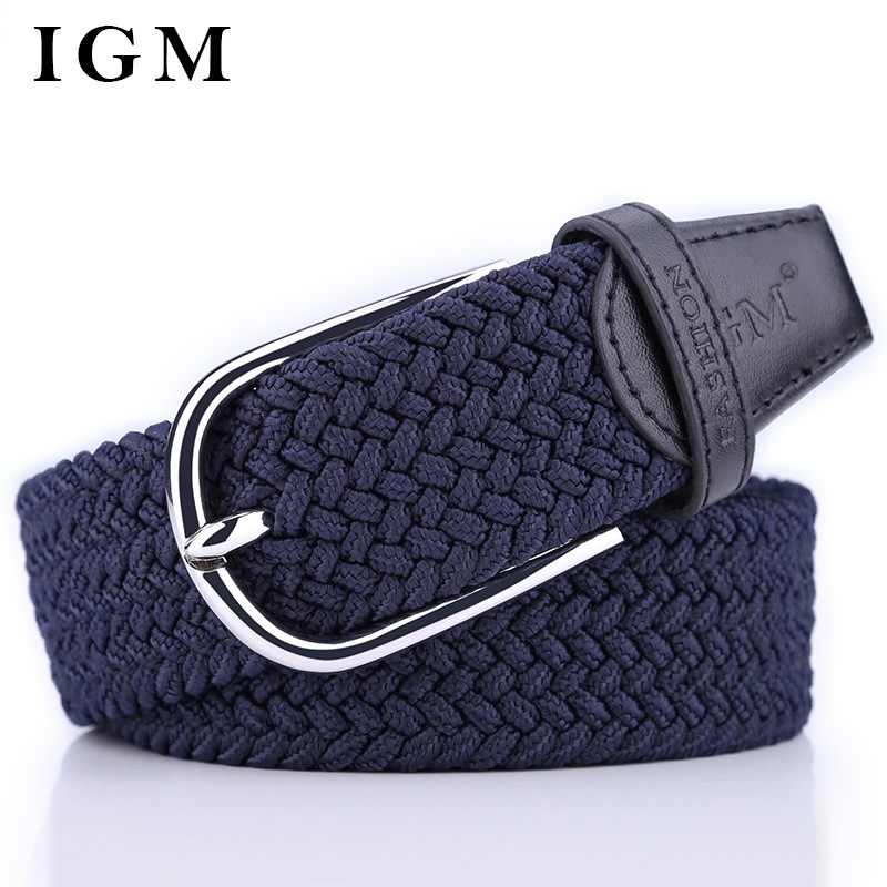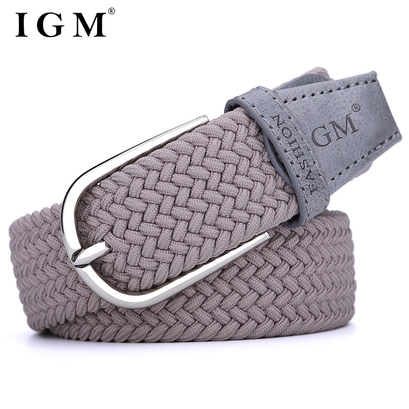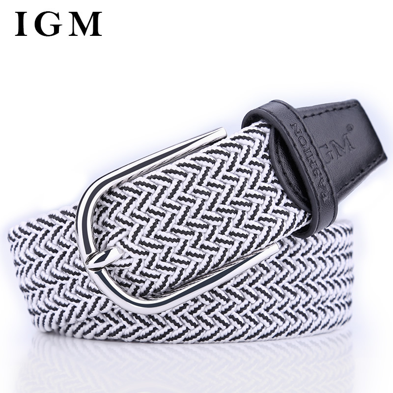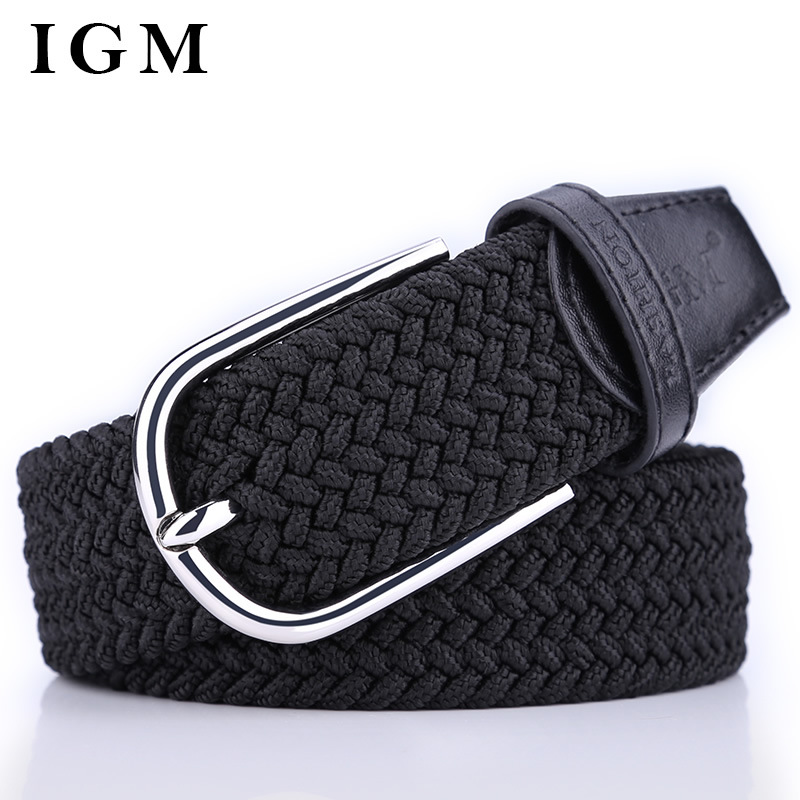 도매 재고 캔버스 탄성 짠 벨트 여자의 버클 바늘 탄성 가죽 벨트 남자의 바지 벨트 패션 브랜드 모든 매치 세대