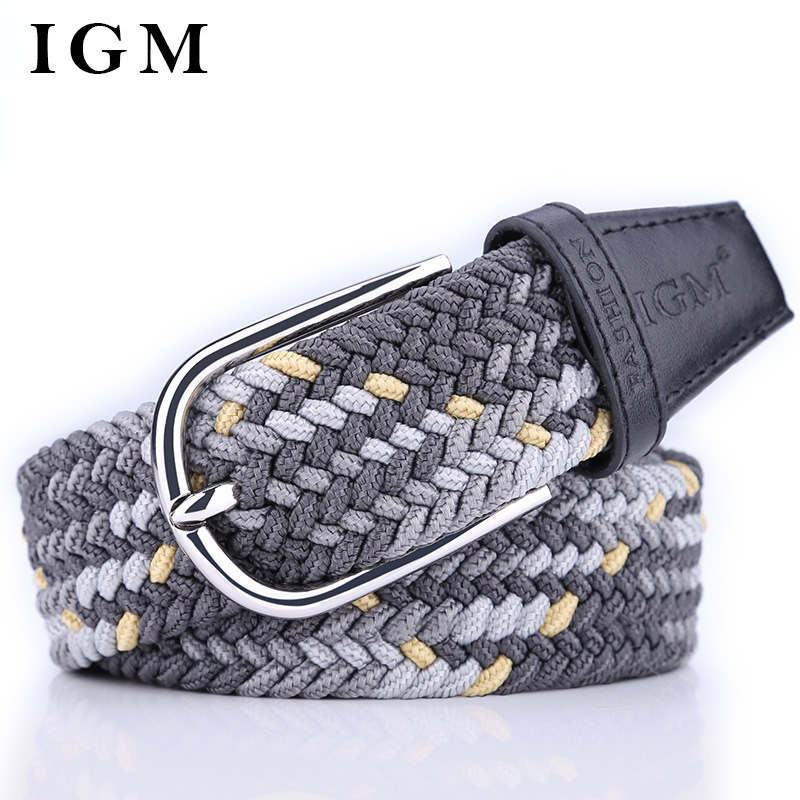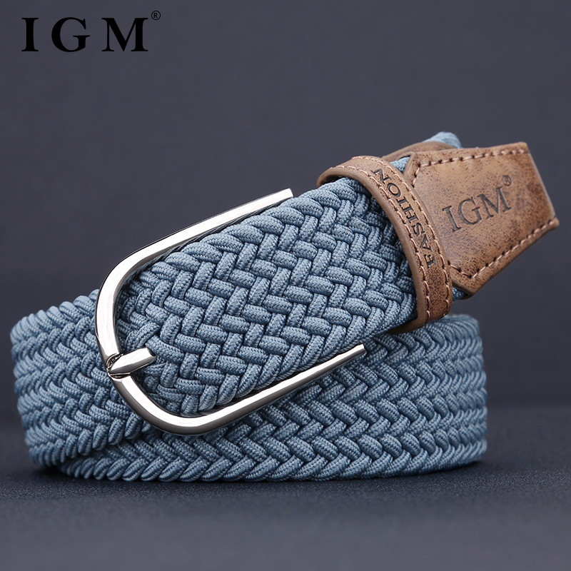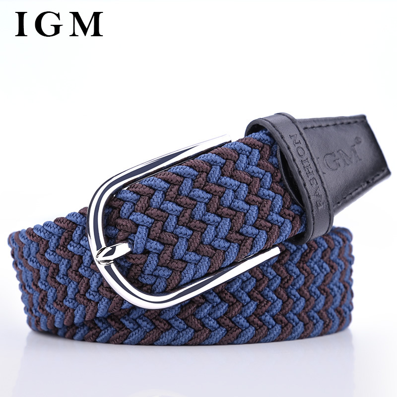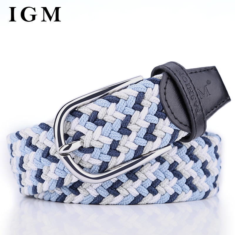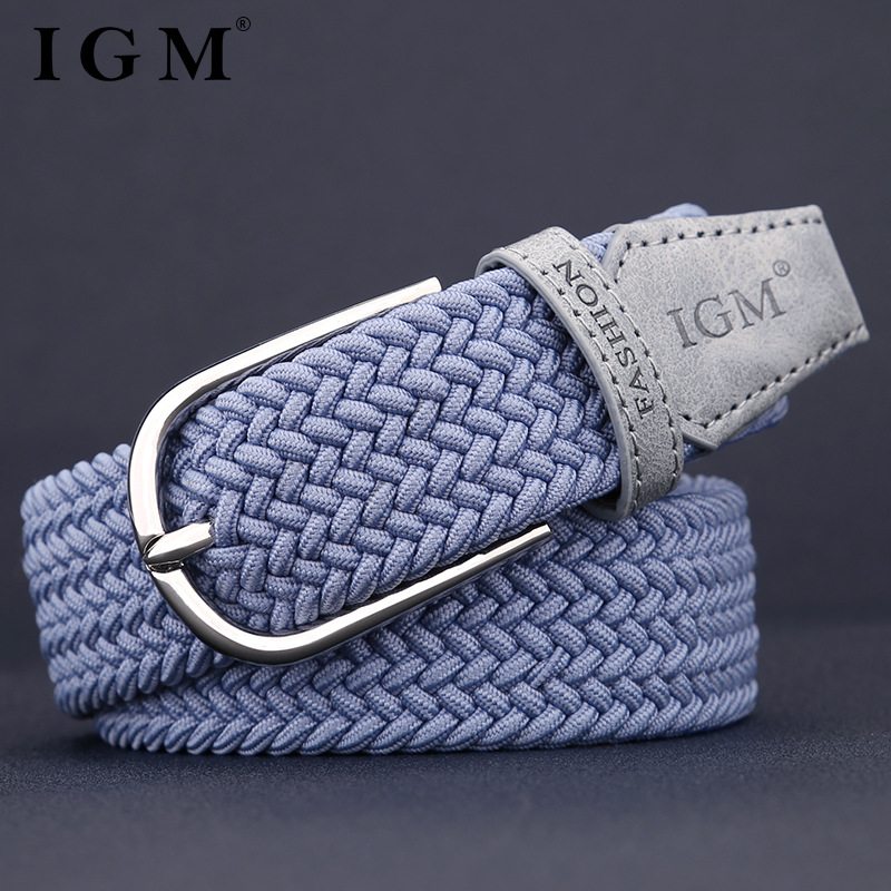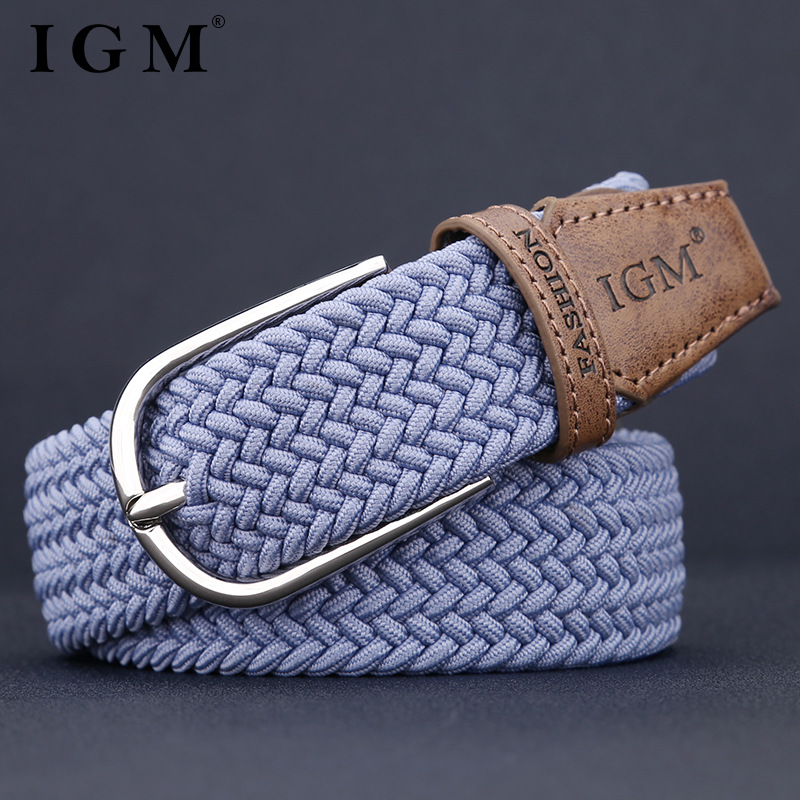 도매 재고 캔버스 탄성 짠 벨트 여자의 버클 바늘 탄성 가죽 벨트 남자의 바지 벨트 패션 브랜드 모든 매치 세대