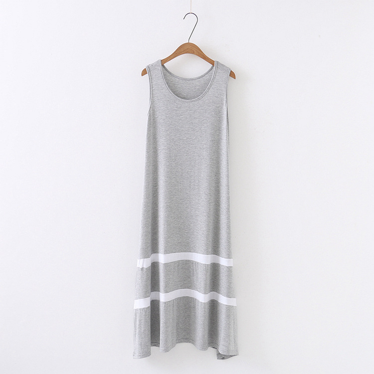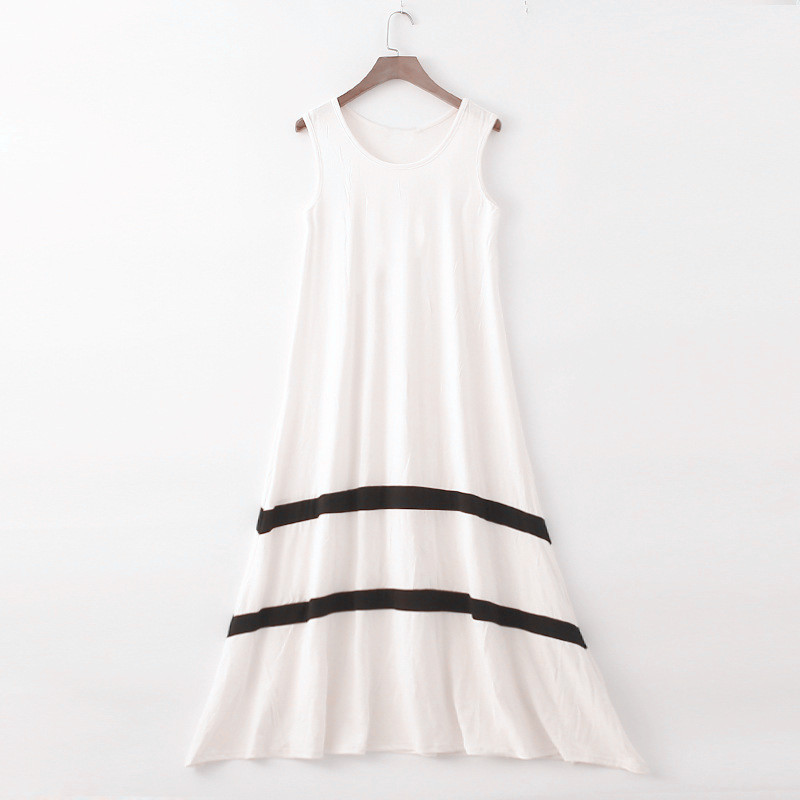 한국어 국경 조끼 롱 스커트 여름 새로운 플러스 사이즈 여성 느슨한 민소매 스윙 바닥 드레스 여성