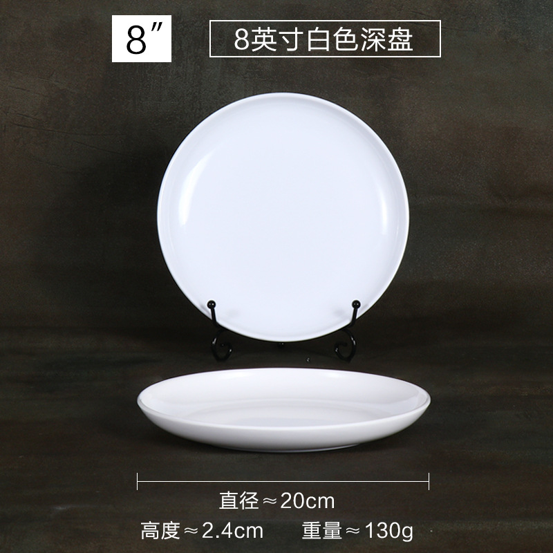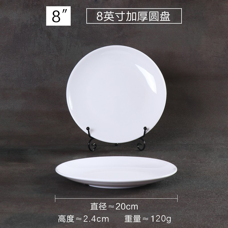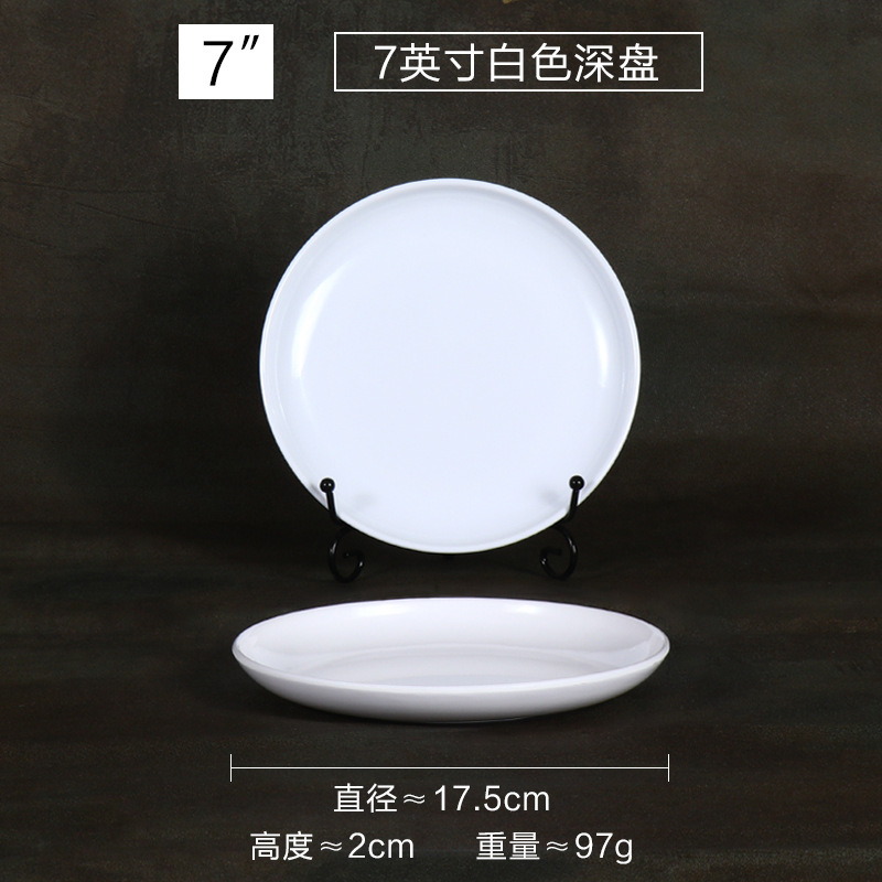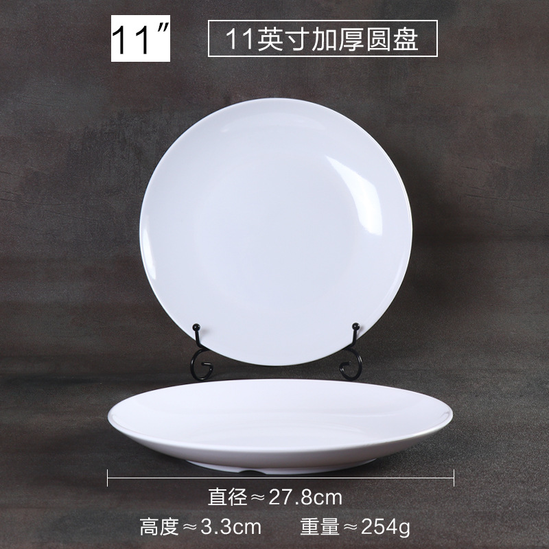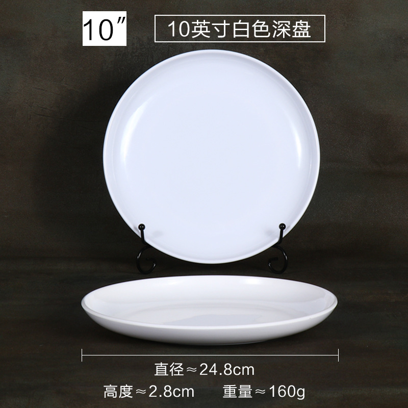 멜라민 디스크 모조 도자기 식기 뼈 접시 라운드 플라스틱 접시 화이트 플랫 플레이트 패스트 푸드 플레이트 뷔페 접시 상업스토어 가기