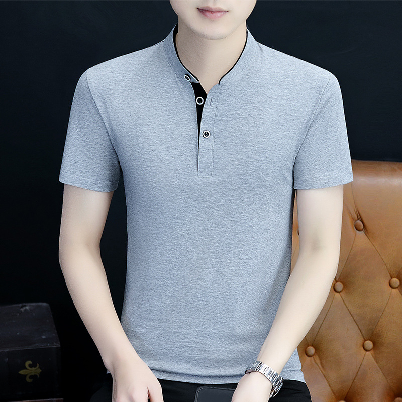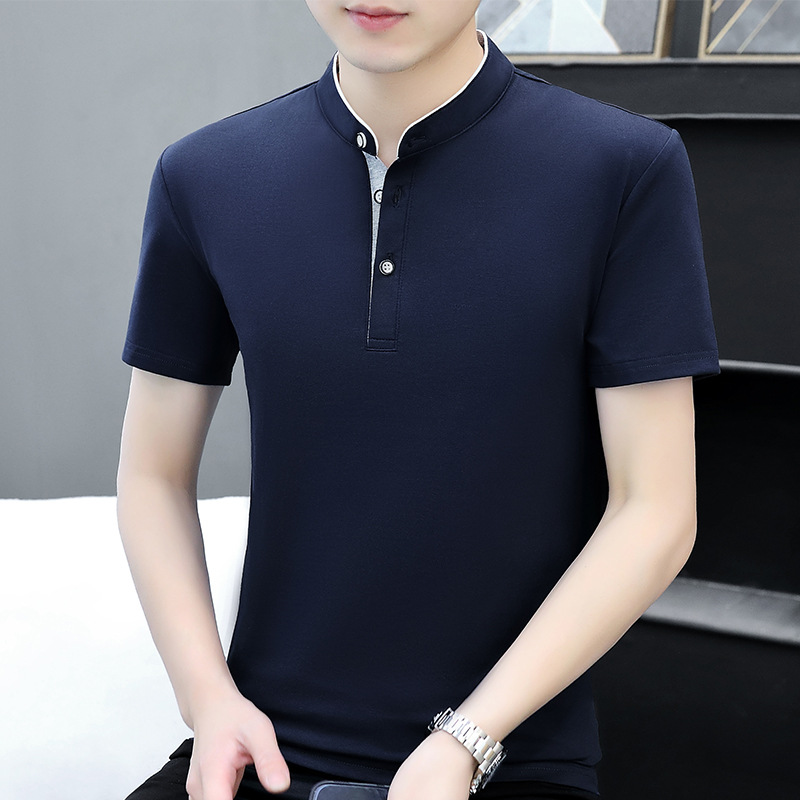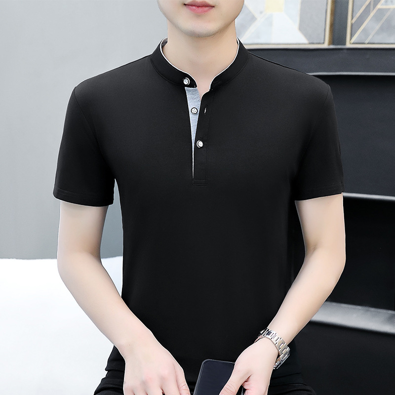 2025 신사복 폴로 티셔츠 바닥 셔츠 한국 남성 의류 스탠드 칼라 반팔 자비로운 탄성 슬림 남성 티셔츠스토어 가기