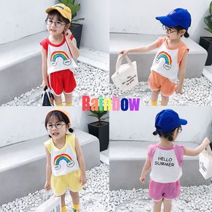 아기의 여름 원피스 세트 대외 무역 새로운 여자 아기의 경량 한국 스타일 파인애플 반팔 티셔츠와 반바지 투피스 세트