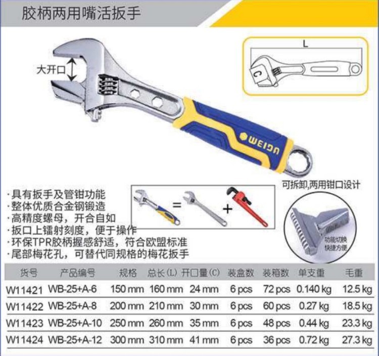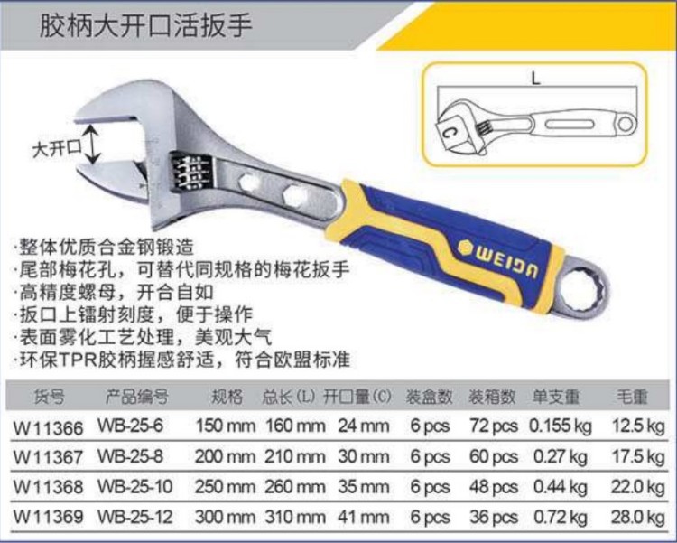 도매 Weida 고무 손잡이 대형 개방형 라이브 렌치 다기능 라이브 렌치 범용 렌치 수동 수리 도구스토어 가기