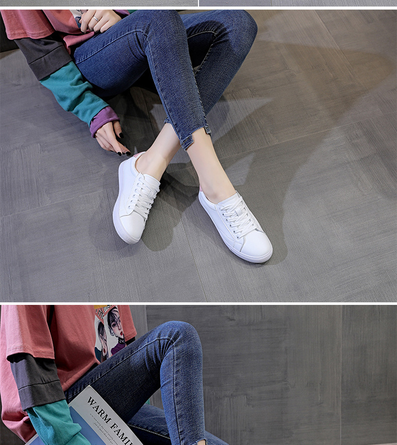 2025 정품 가죽 흰색 신발 부드러운 밑창 둥근 발가락 캐주얼 신발 플랫 컬러 매칭 펌프 게으른 신발 새로운 여성 신발스토어 가기