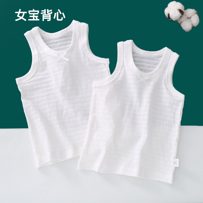 여름 얇은 순면 흰색 어린이 베이스 셔츠 모든 면 클래스 아기 소년과 소녀를위한 부드러운 캐미솔스토어 가기