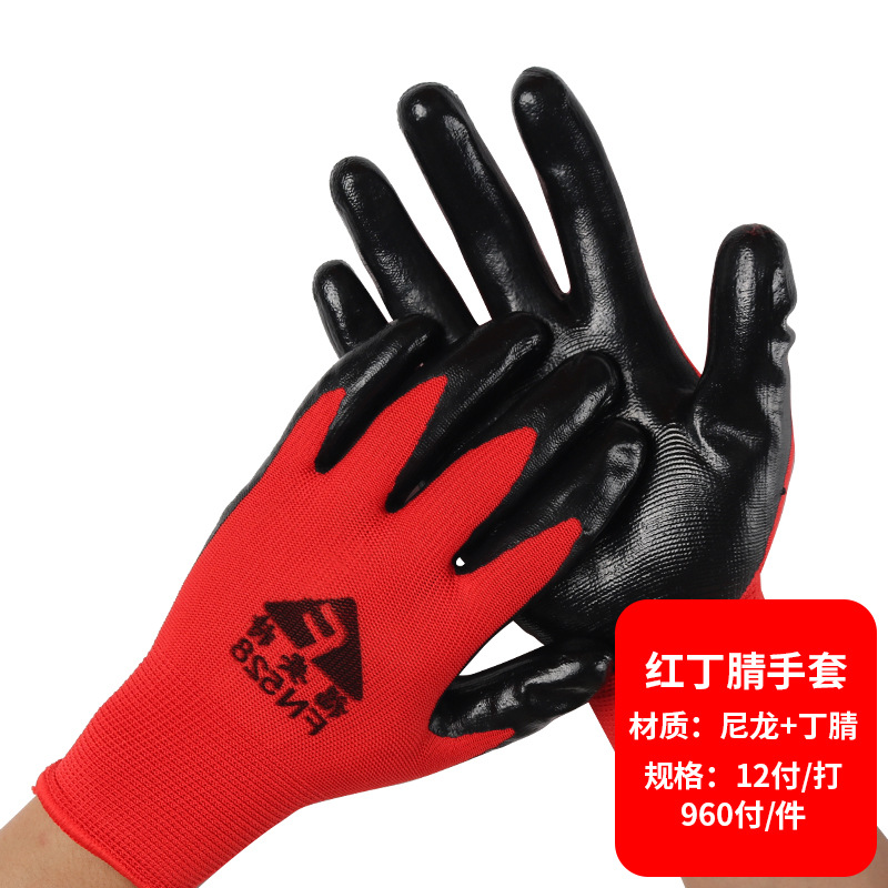 노동 보호 장갑, 니트릴 담근 장갑, 미끄럼 방지 및 내마모성, 철근 작업 창고 처리 작업, 걸이용 고무 건설 현장 장갑