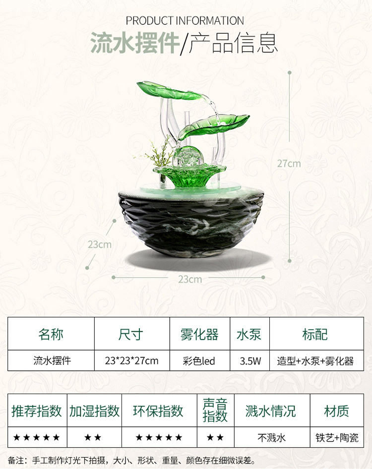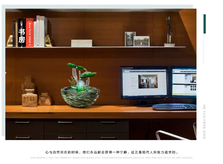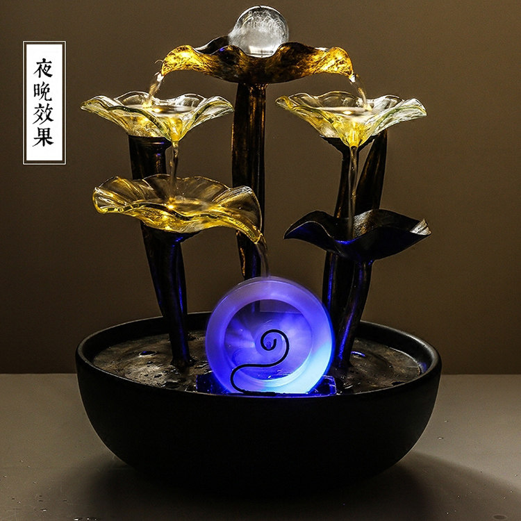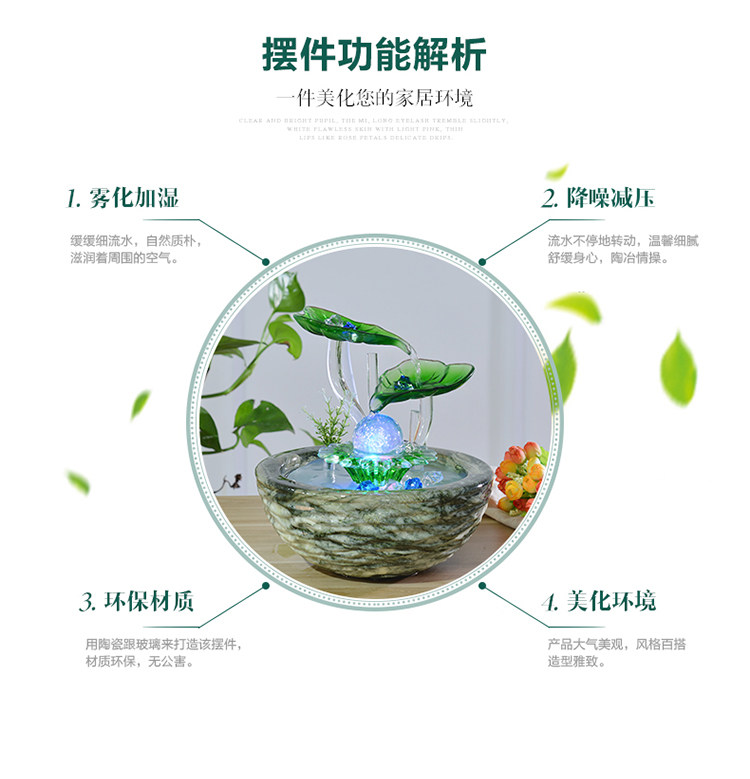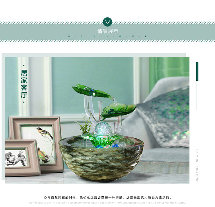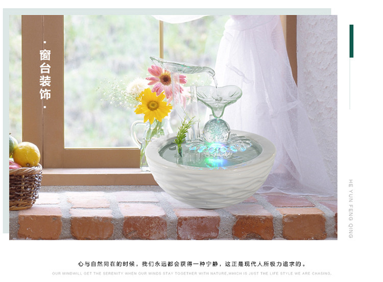 크리 에이 티브 데스크탑 어항 흐르는 물 장식품 세라믹 분수 사무실 거실 풍수 바퀴 전송 볼 열기 작은 선물
