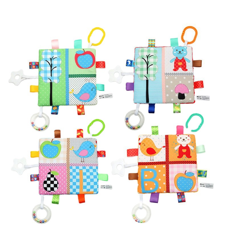 牙胶安抚巾功能丰富,采用了水蜜桃面料,安全印刷,色彩清新,图案可爱。水洗不脱色,不掉毛,宝宝可啃咬。添加了一个挂扣,方便清洗后晾晒悬挂,安抚巾内置响纸和海绵,能吸住宝宝口水,应多用清水清洗消毒,正面左下角有一个BB叫,捏一下可发出哔哔的叫声。牙胶挂件可以较好缓解宝宝出牙期不适感,宝宝啃咬可按摩牙床。宇宙粒子响圈,摇一摇,里面的粒子就可以动起来并发出清脆的响声,能吸引宝宝的注意力;带有图案的个性化标签,吸引宝宝的注意,让宝宝的小手进行拉扯,锻炼宝宝小手的精细化动作;安抚巾上有几何图案,小动物,树木,帮助宝宝学会认识简单的图案,建立宝宝早期的认知基础。底部面料采用了压花工艺,宝宝抓起来有突起的触感,可激发宝宝细腻的感官。