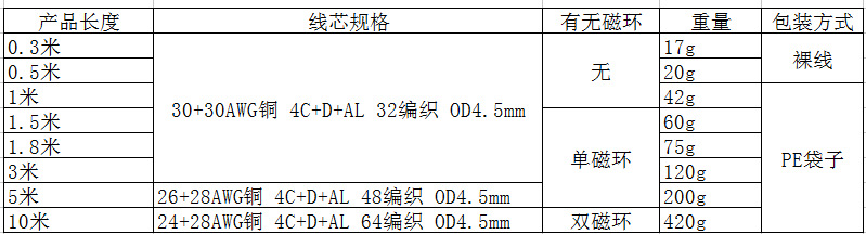 产品线芯:全铜+32屏蔽网+铝箔屏蔽