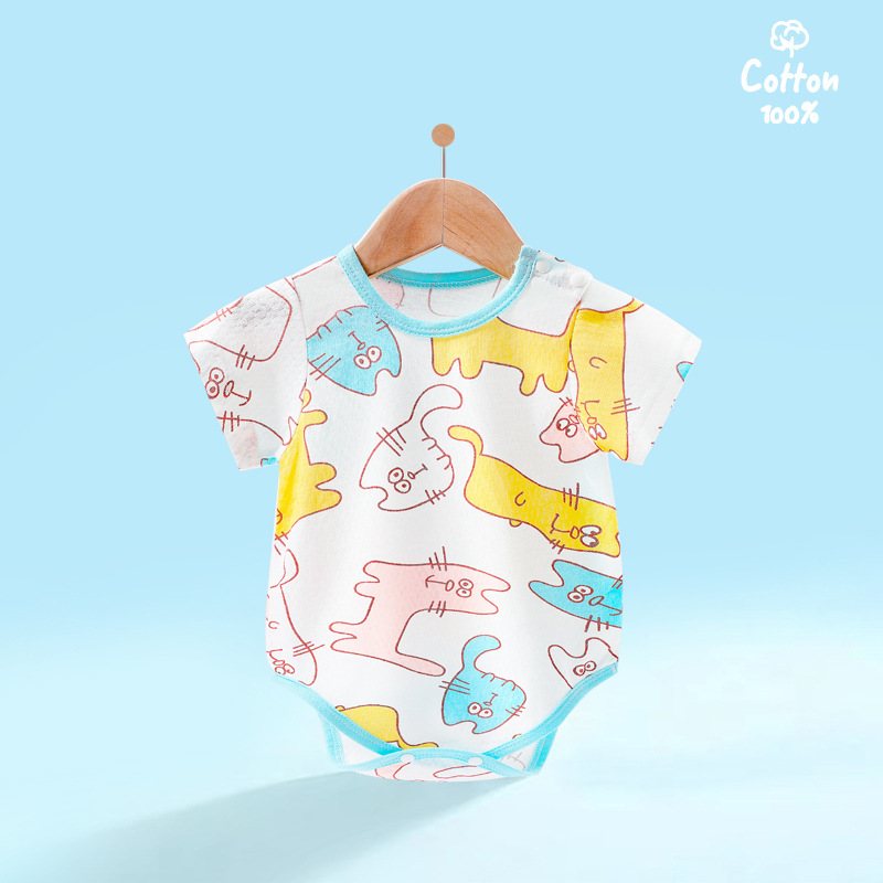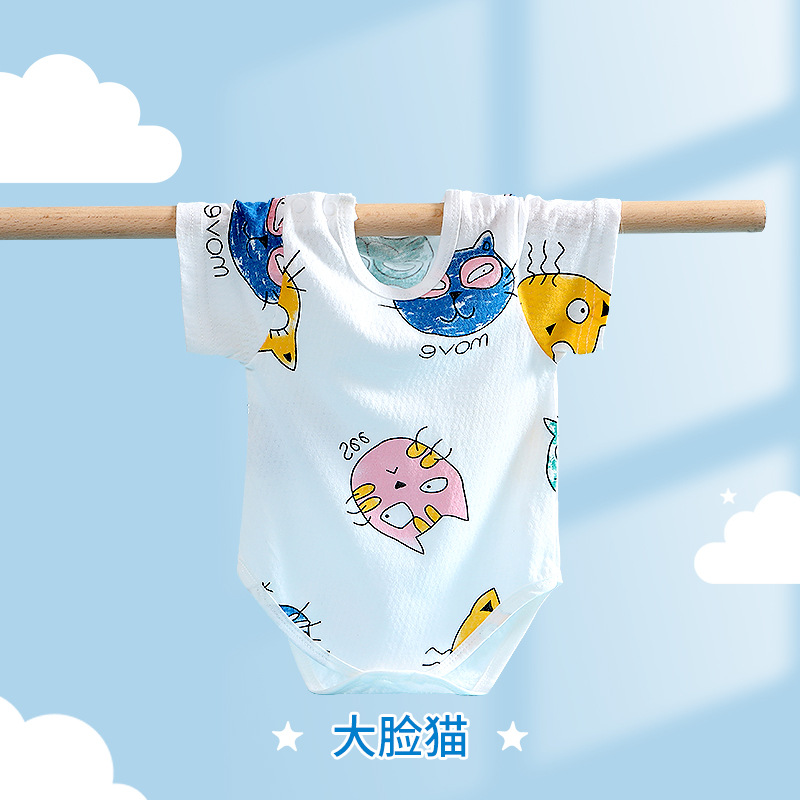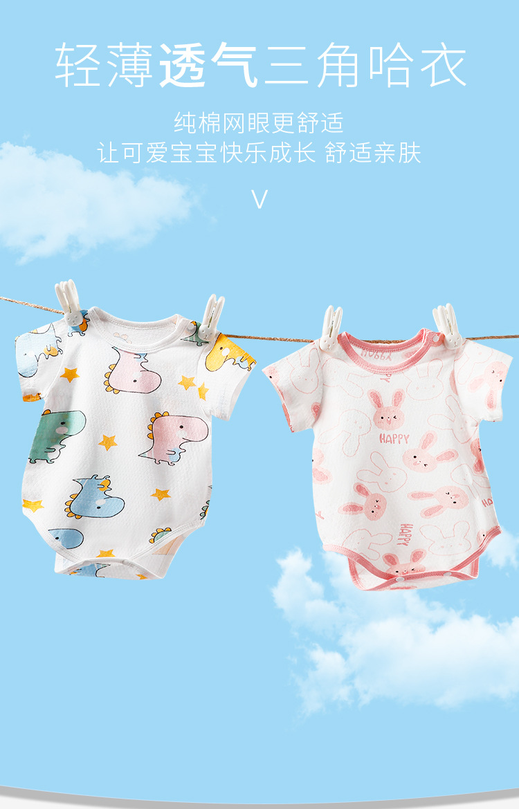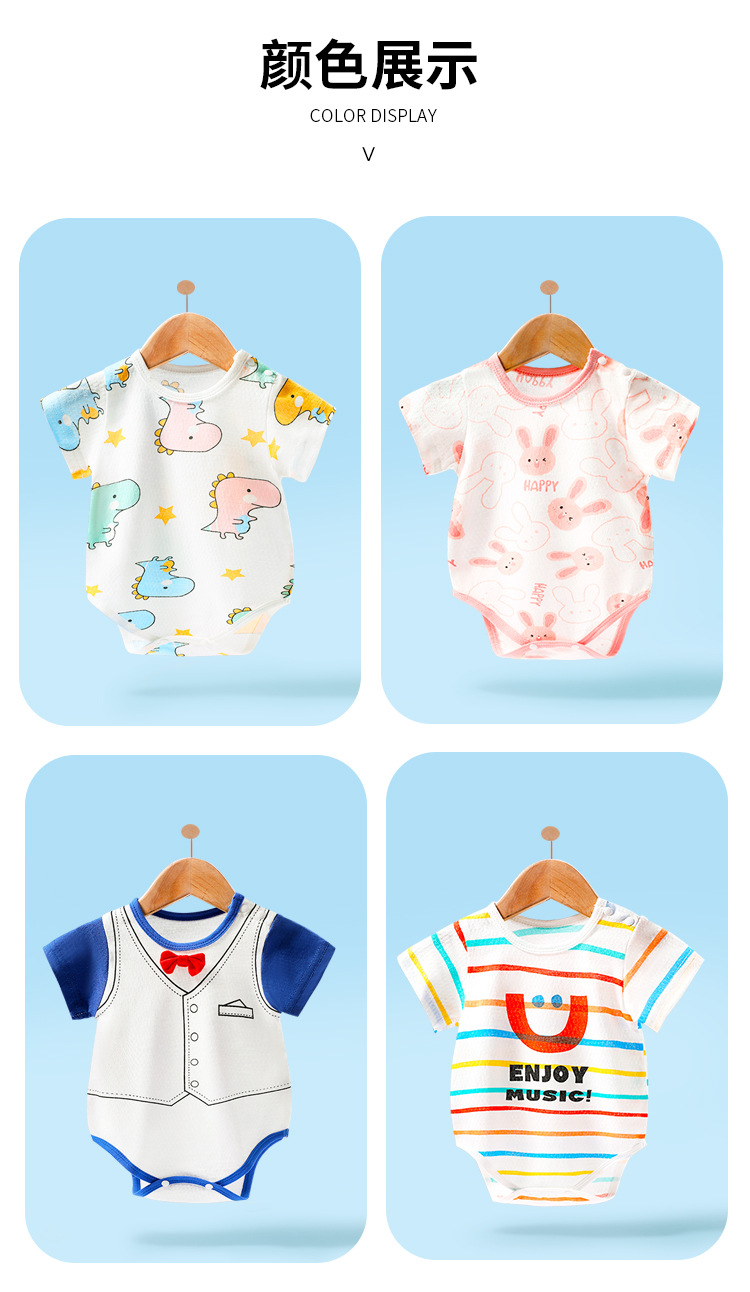 9911 소년 소녀를위한 아기 원피스 옷 아기 모자 셔츠 삼각형 반팔 랩 방귀 옷 얇은 순수한 면화 여름과 여름스토어 가기