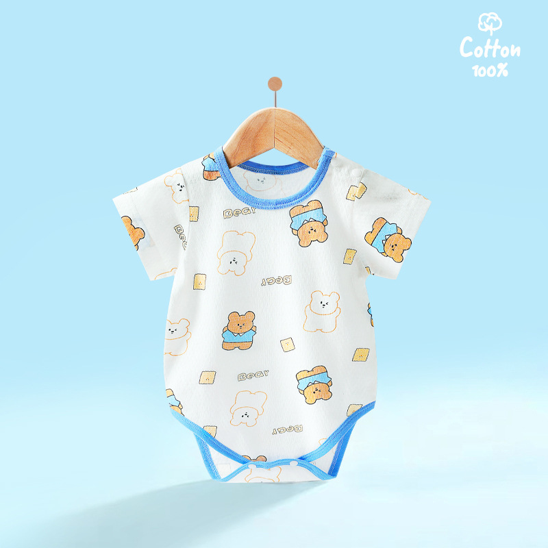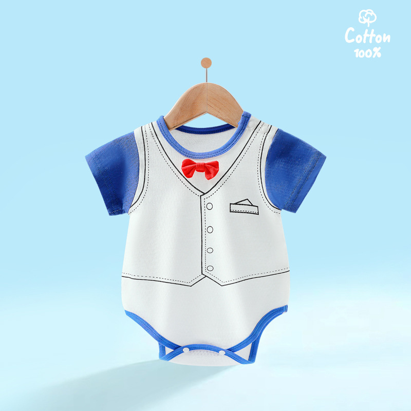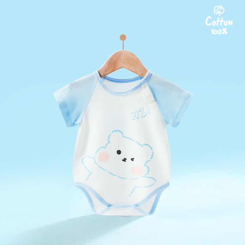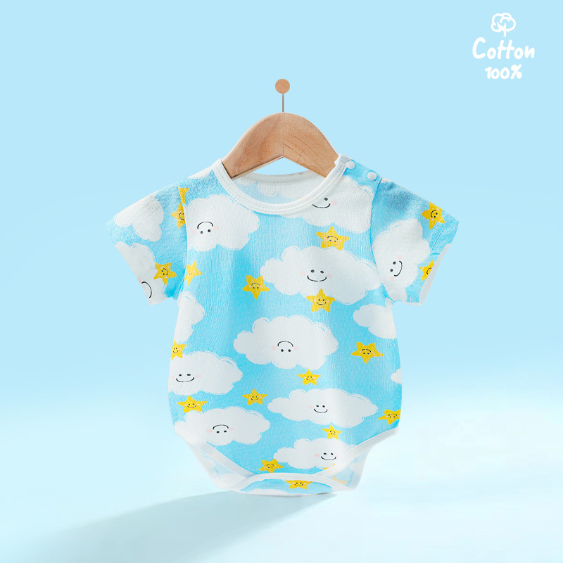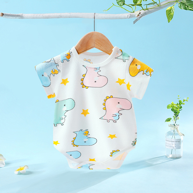 9911 소년 소녀를위한 아기 원피스 옷 아기 모자 셔츠 삼각형 반팔 랩 방귀 옷 얇은 순수한 면화 여름과 여름스토어 가기