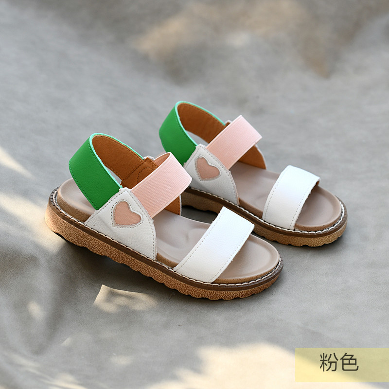 Beren 어린이 신발 소녀 정품 가죽 샌들 2024 공주 해변 신발 게으른 부드러운 바닥 중대형 어린이 방수 여름 한국어 버전스토어 가기