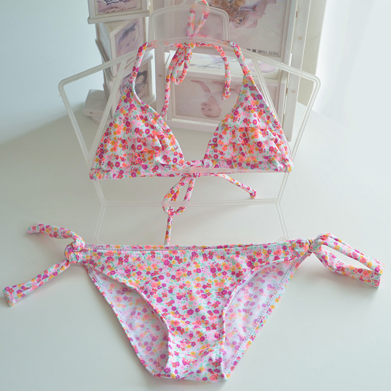 어린이 수영복 아기의 중형 및 대형 어린이 작은 꽃 레이스 업 조정 가능한 비키니 귀여운 소녀의 스파 분할 수영복스토어 가기