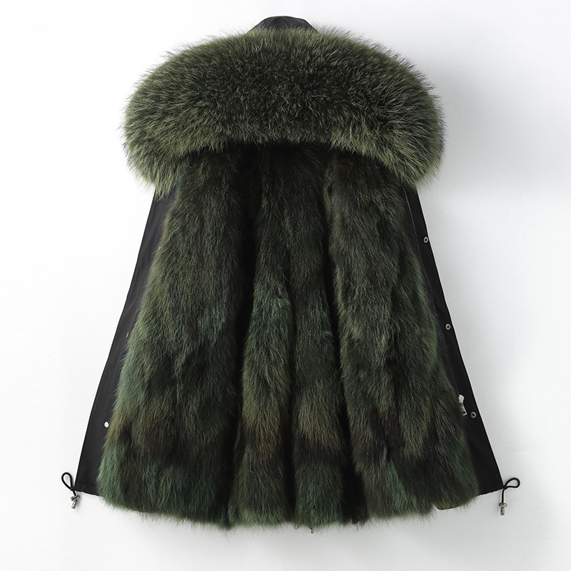 2025 겨울 여우와 너구리 모피 안감 파카 여성용 중간 길이 파카 코트 모피 재킷
