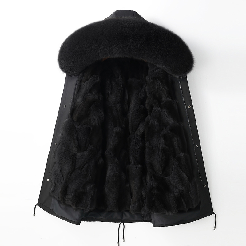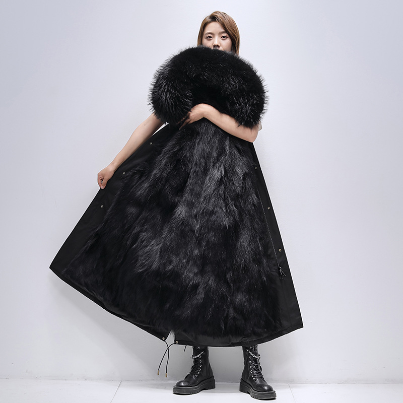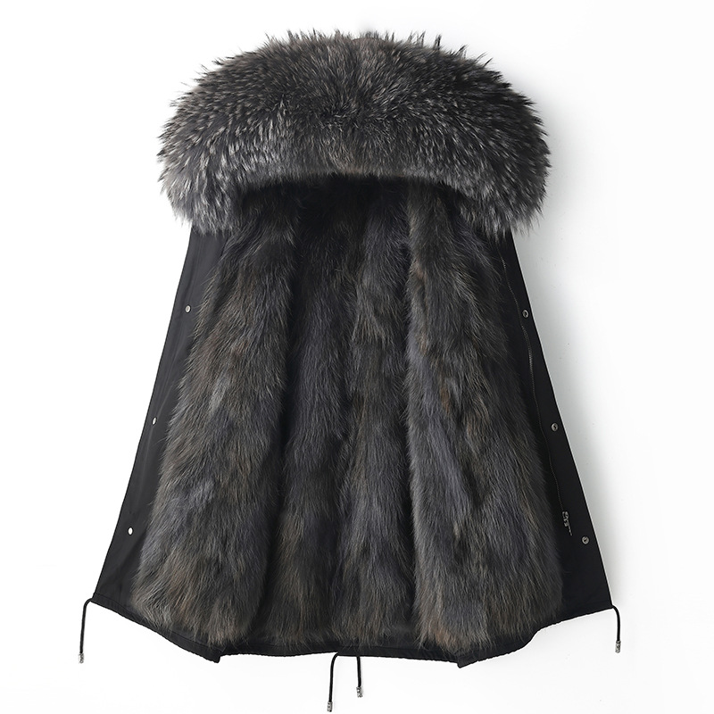 2025 겨울 여우와 너구리 모피 안감 파카 여성용 중간 길이 파카 코트 모피 재킷스토어 가기
