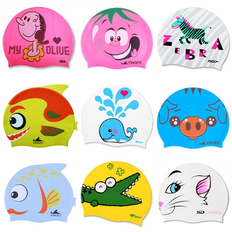 어린이 수영 모자 실리콘 방수 만화 수영 모자 소년과 소녀를위한 새로운 귀여운 물고기 귀여운 아기 수영복