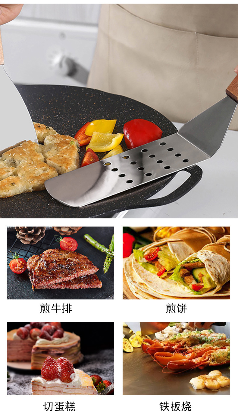 木柄不锈钢加长煎饼铲子 耐用耐磨易清洗手抓饼牛排煎铲烹饪铲子