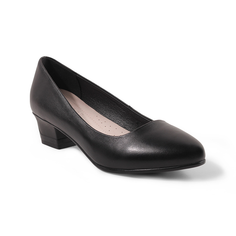 2025 신상 부드러운 가죽 뾰족코 부드러운 밑창 작업용 여성 구두, 두꺼운 굽의 얕은 구두, 여성용 드롭쉬핑 가죽 구두