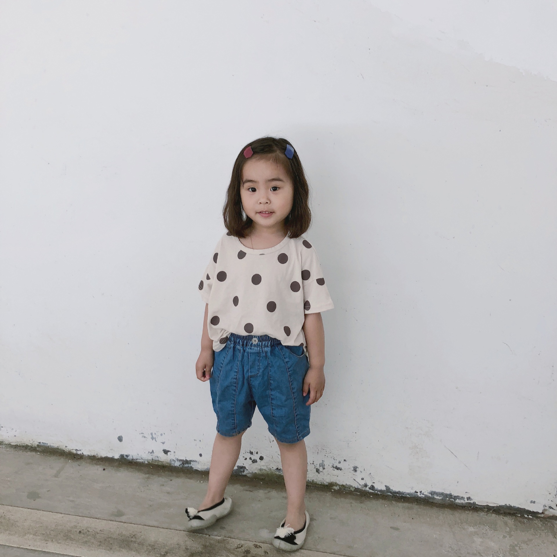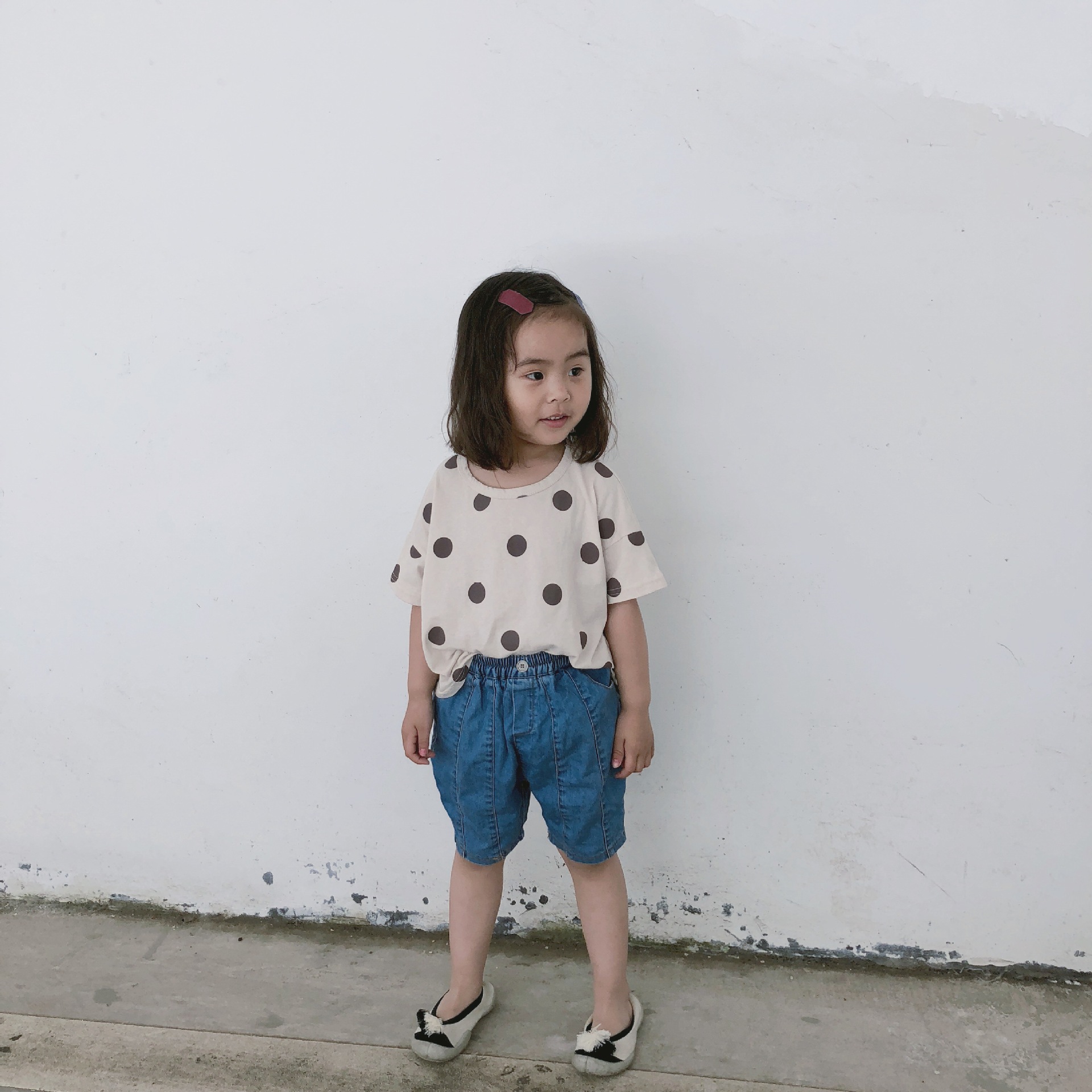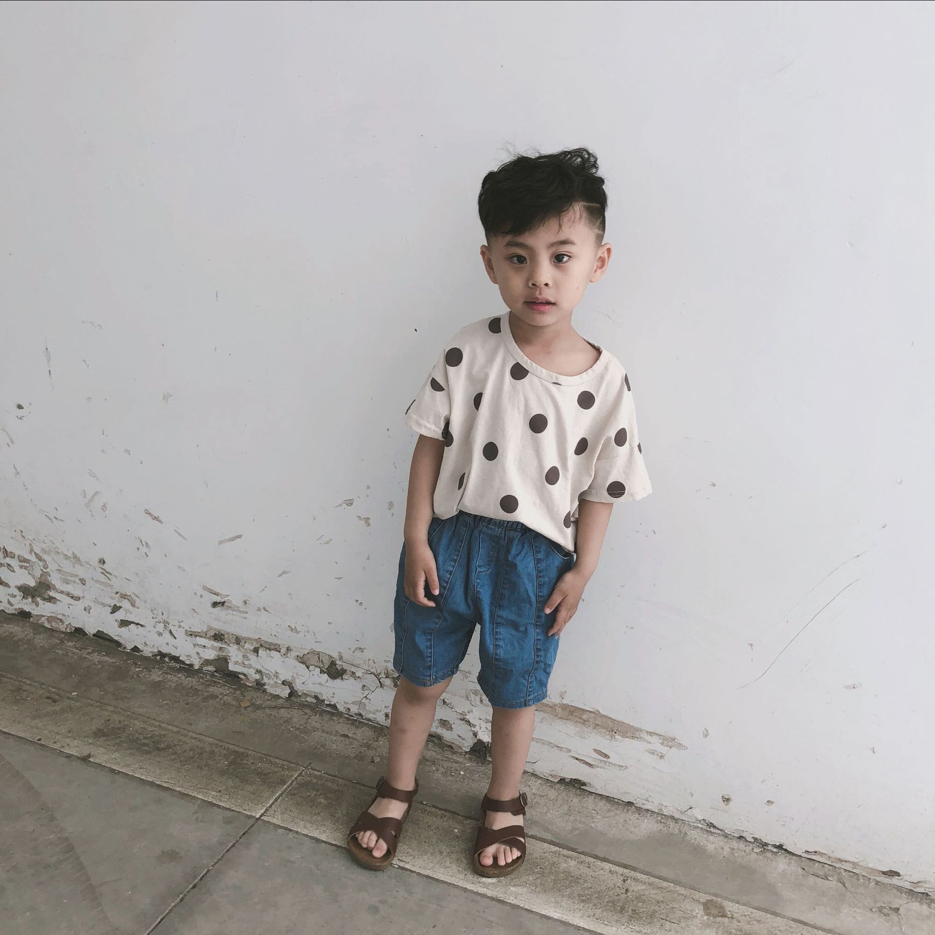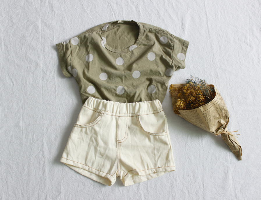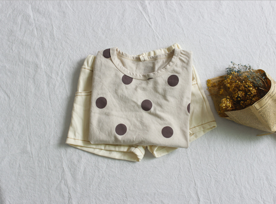 여름 어린이 티셔츠 반팔 소년 바닥 셔츠 한국 스타일 라운드 넥 폴카 도트 다목적 소녀 탑 코튼 스팟 도매스토어 가기