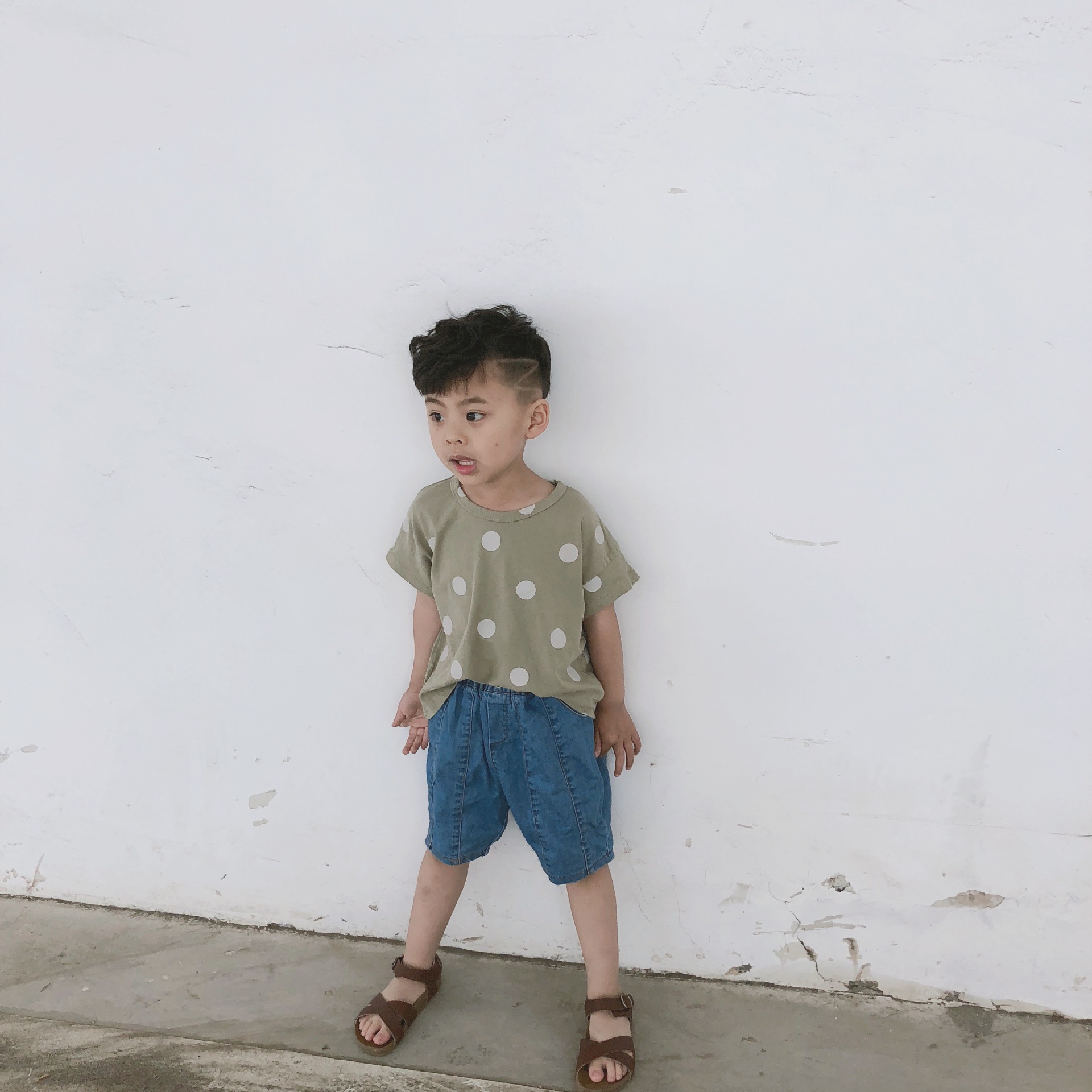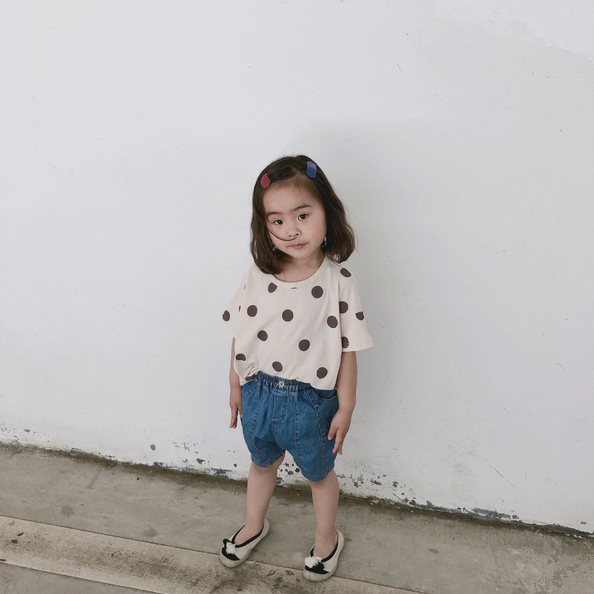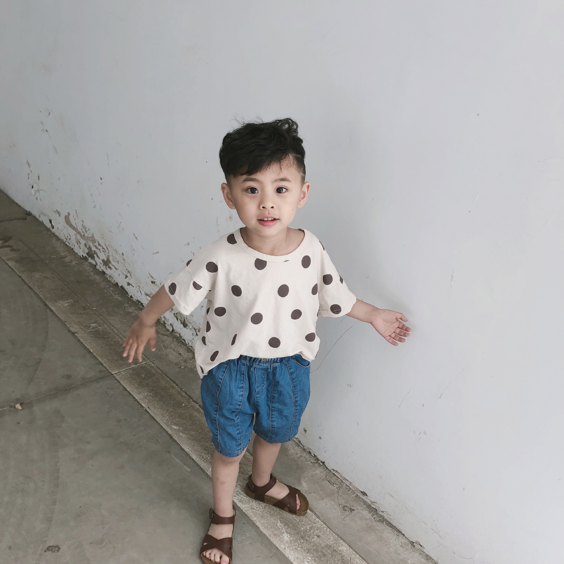 여름 어린이 티셔츠 반팔 소년 바닥 셔츠 한국 스타일 라운드 넥 폴카 도트 다목적 소녀 탑 코튼 스팟 도매스토어 가기