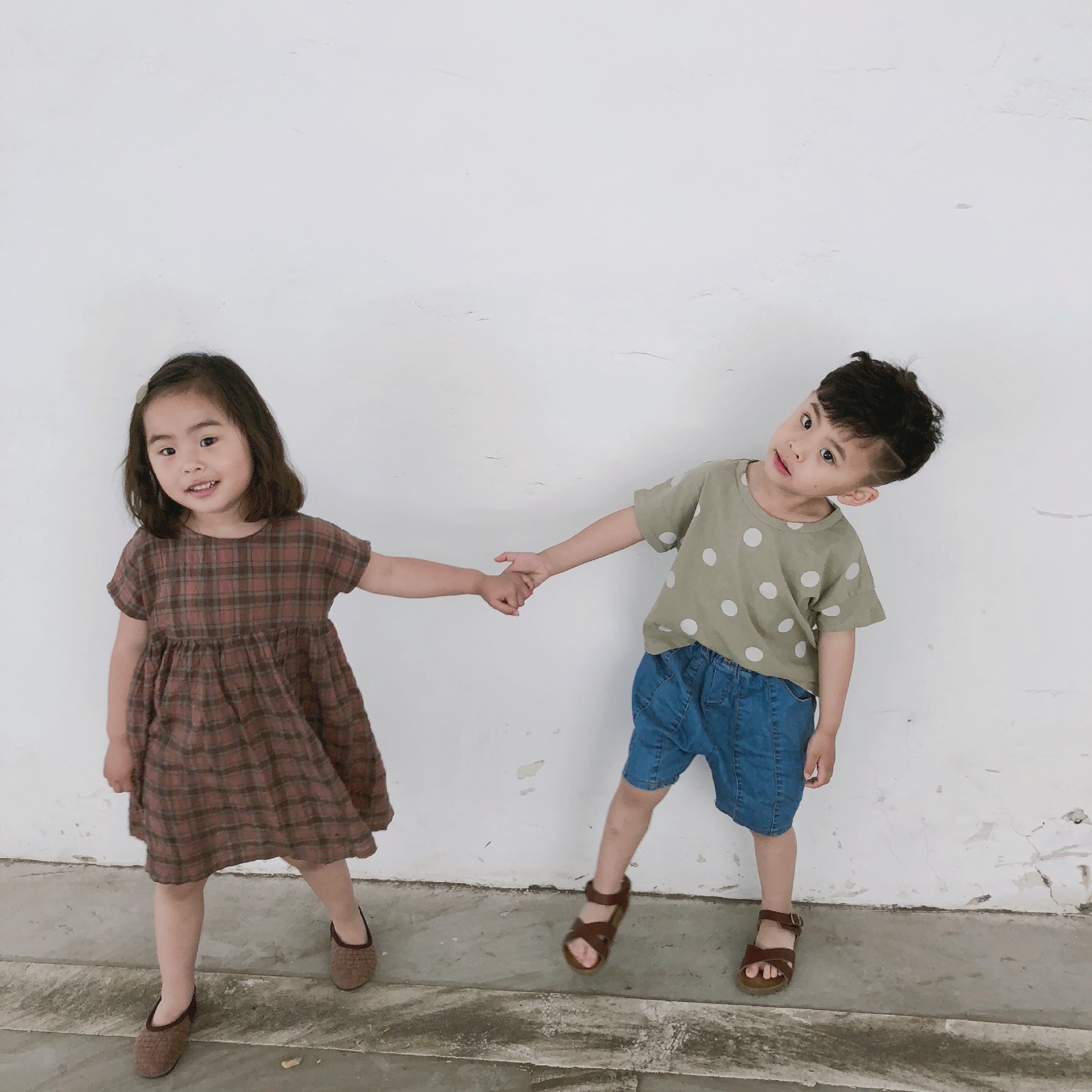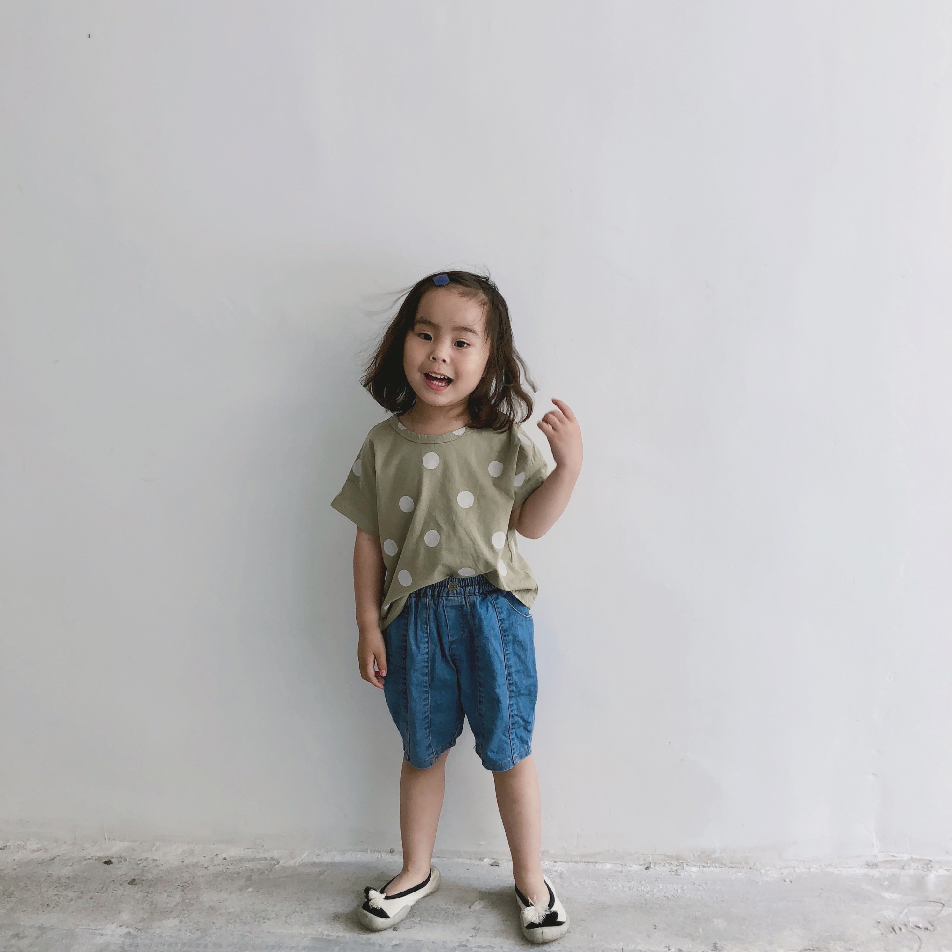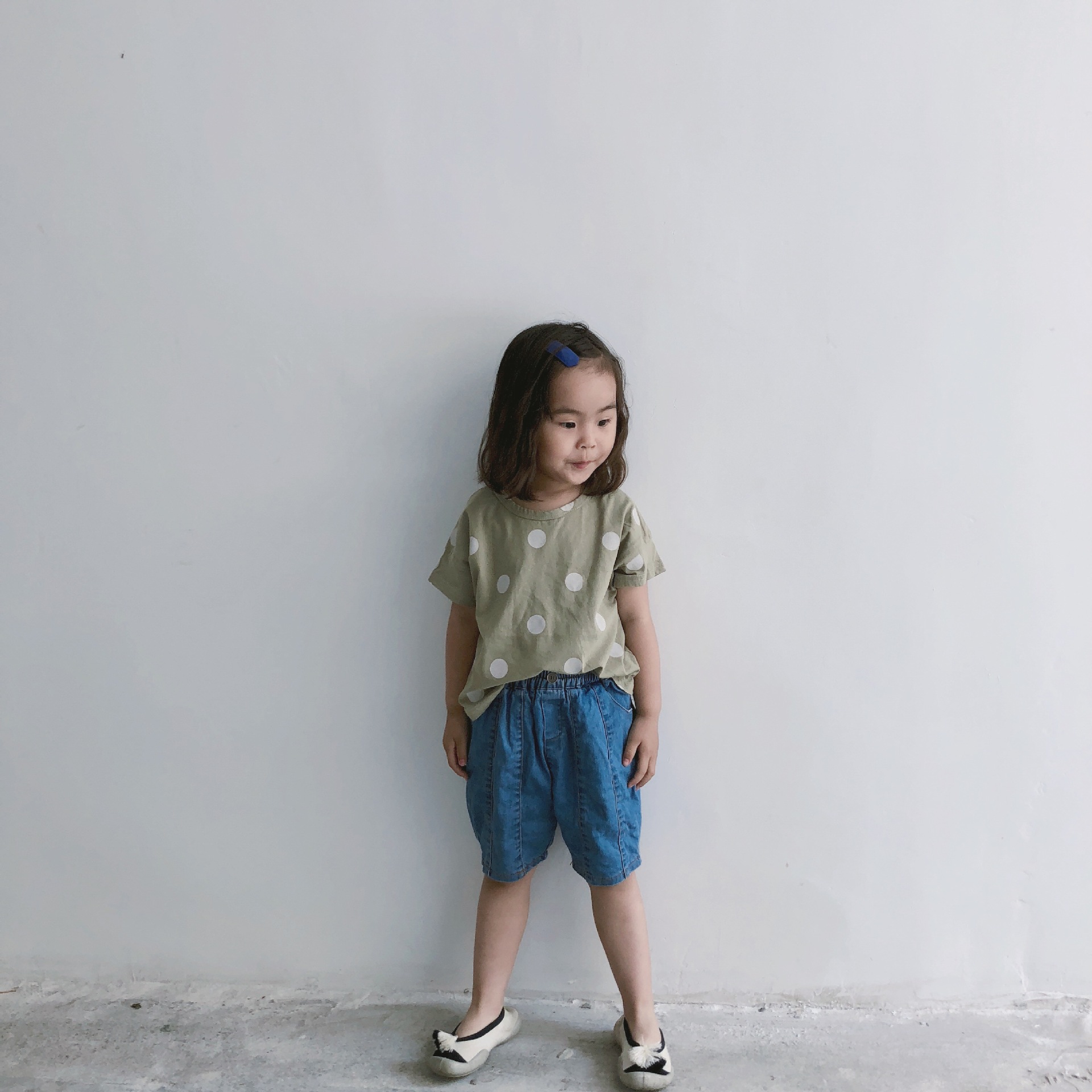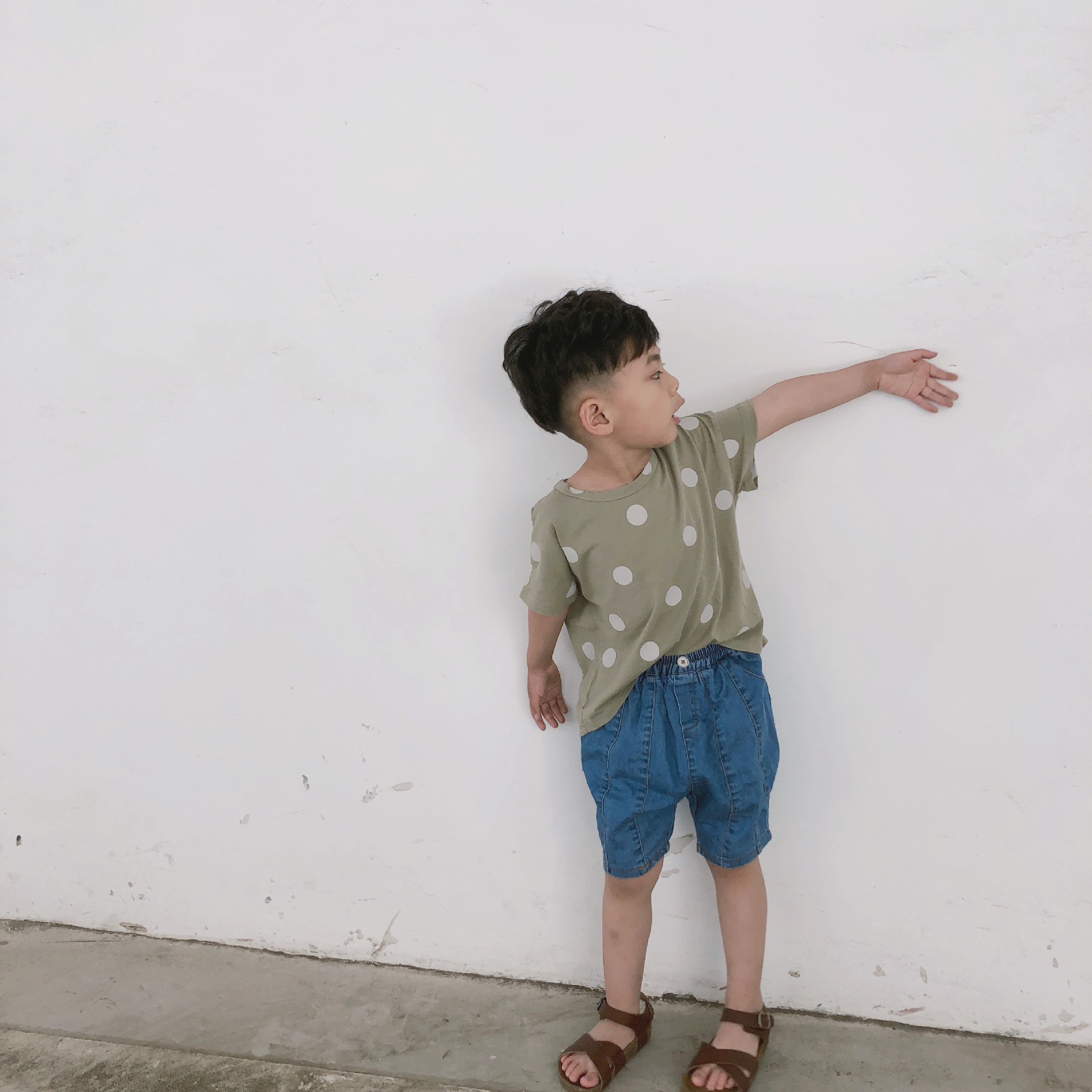 여름 어린이 티셔츠 반팔 소년 바닥 셔츠 한국 스타일 라운드 넥 폴카 도트 다목적 소녀 탑 코튼 스팟 도매스토어 가기