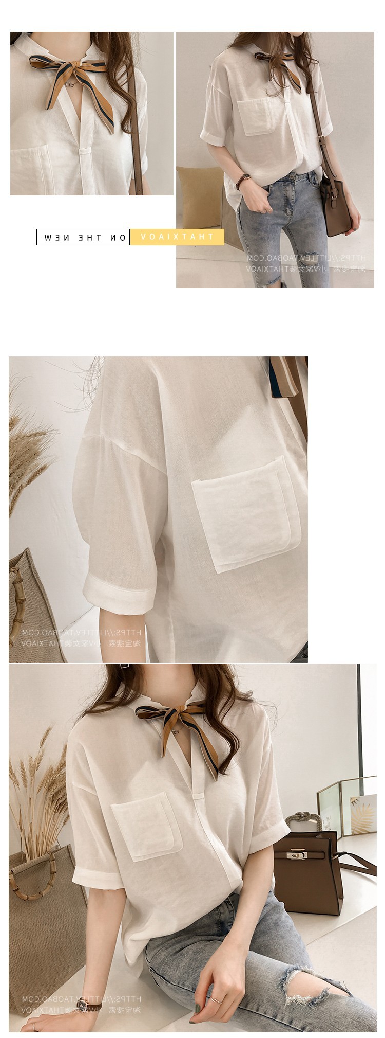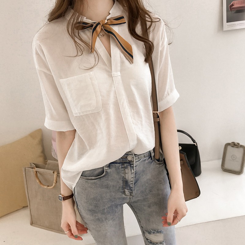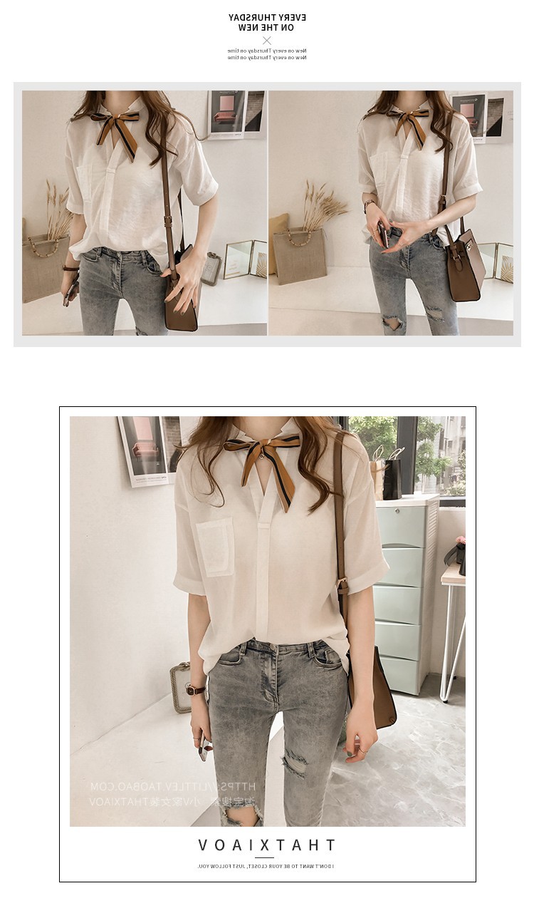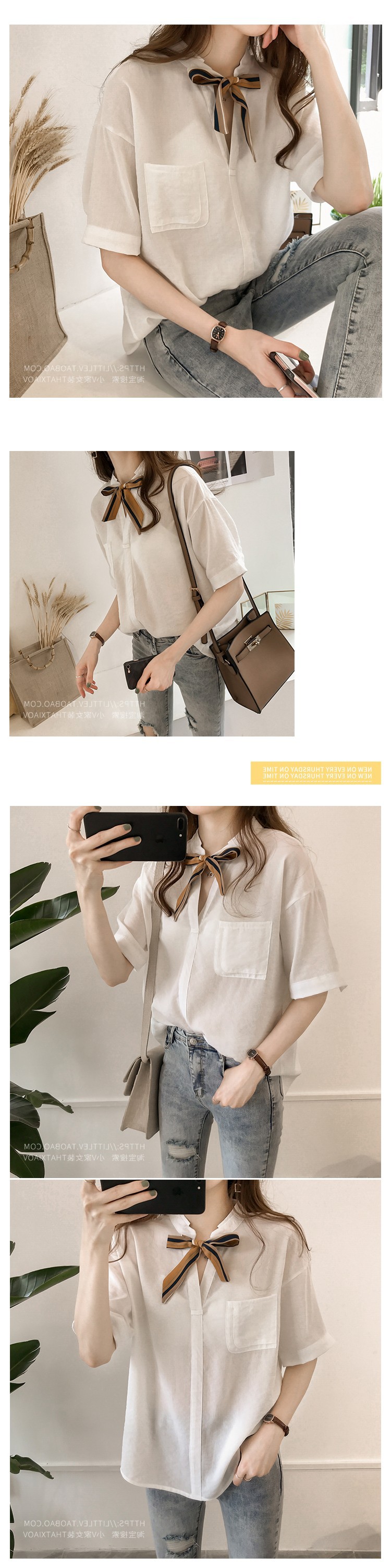 2023 여름 새로운 패션 스트라이프 타이 반팔 셔츠 여성용 루즈한 모든 매치 반팔 셔츠스토어 가기