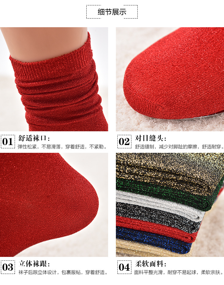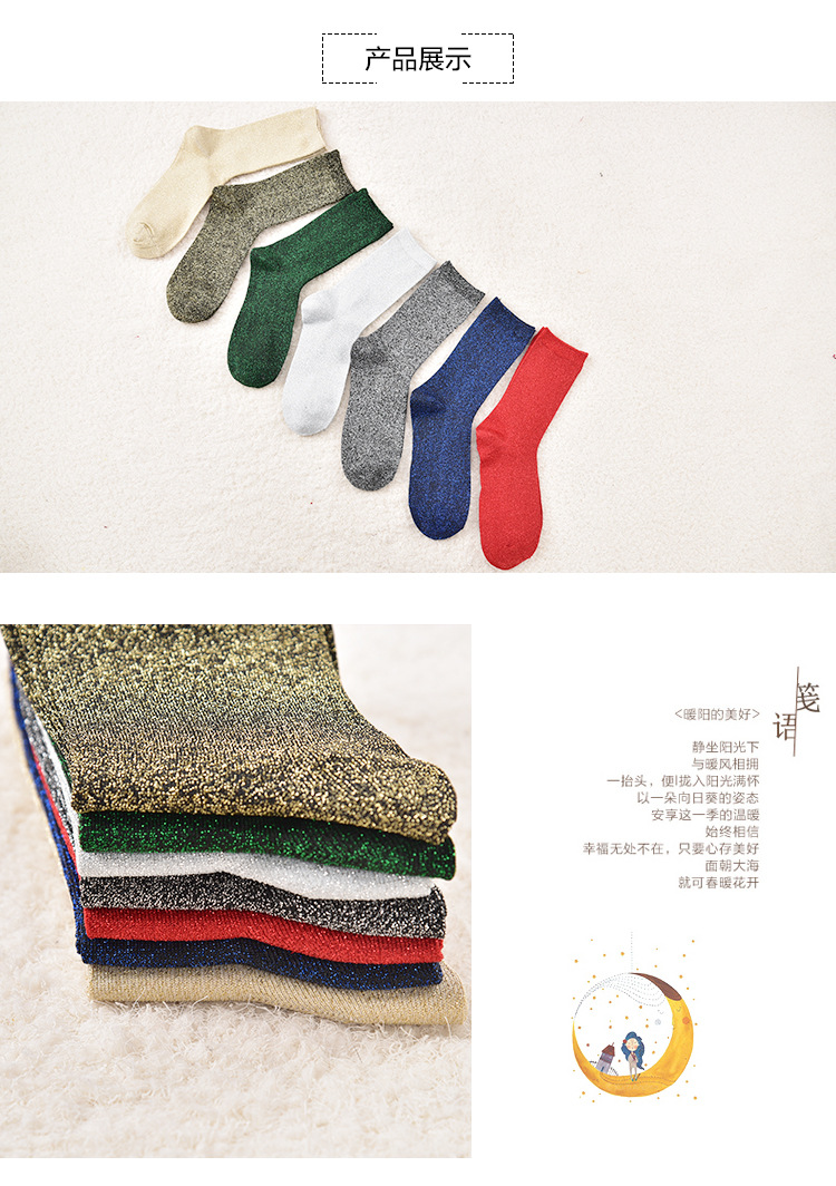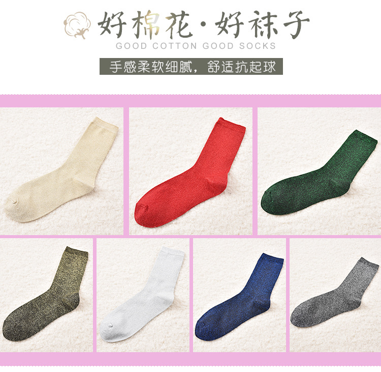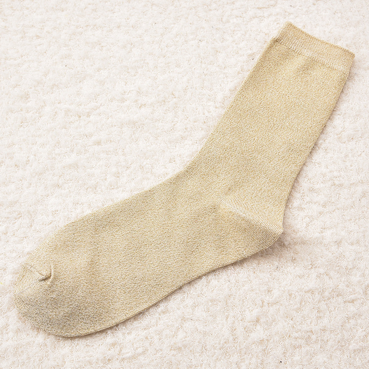 [노점공급] 일본 금색과 실버 실크 양말 여성용 단색 튜브 더미 양말 여름 얇은 통기성 여성 양말스토어 가기