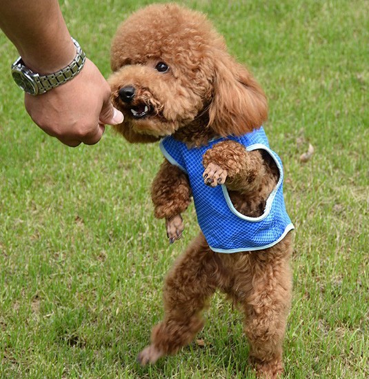 PVA宠物衣服的秘密:内部有无数个的空气隔层,制造冰爽效果。只需将本宠衣服浸入清水里几分钟再挤干,因为在汽化作用下散热的原理,会达到比周围空气低的温度,从而给皮肤带来极其冰爽的感觉。此外因为其有优异的吸水性所以能够轻松的吸收宠物皮肤表面的汗液、水迹,并且只要重复放入水里浸湿拧干重复使用,就又能够恢复到冰爽效果。蒸发水份的同时热量汽化散发,降体温,更冰爽。