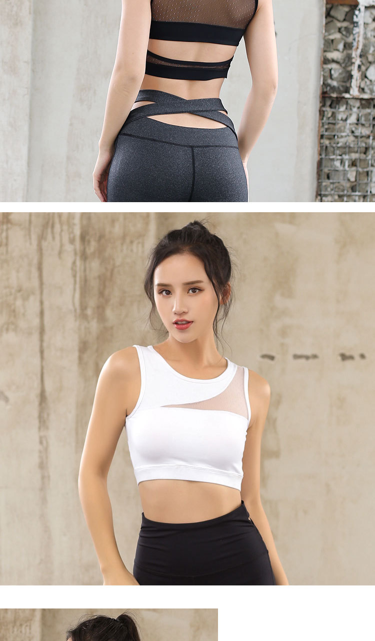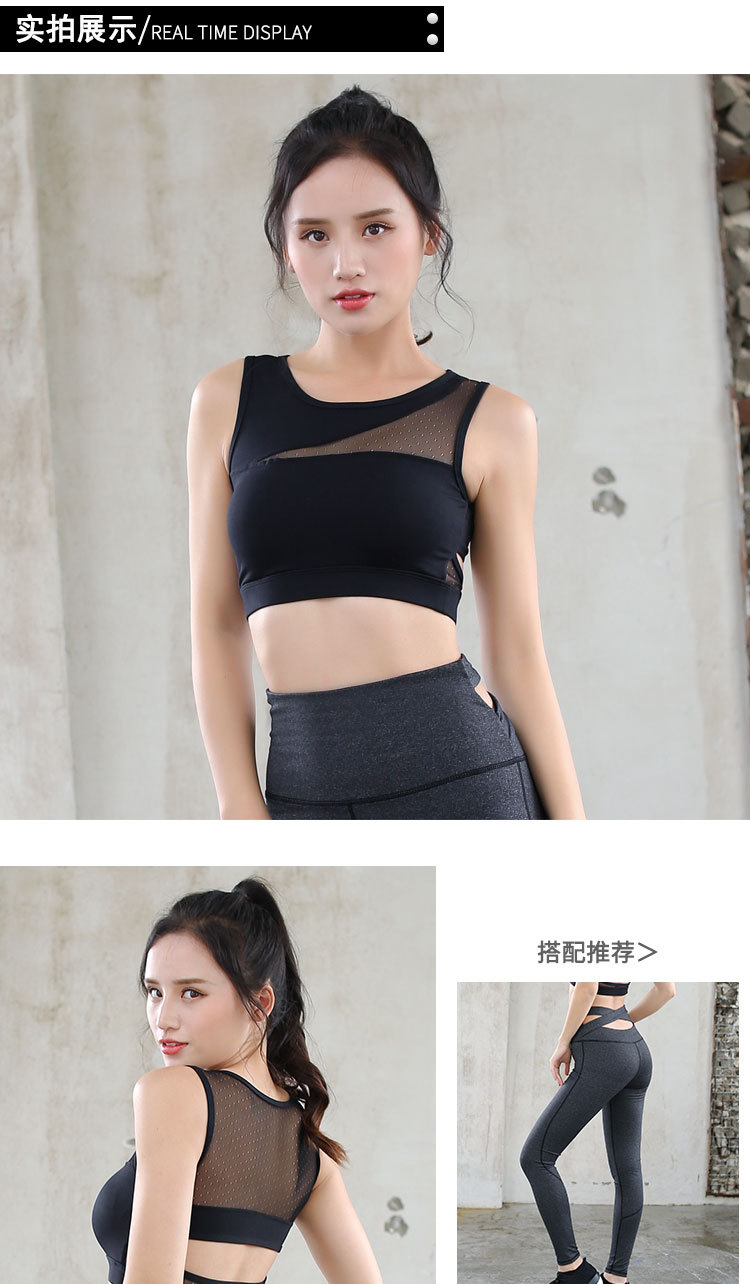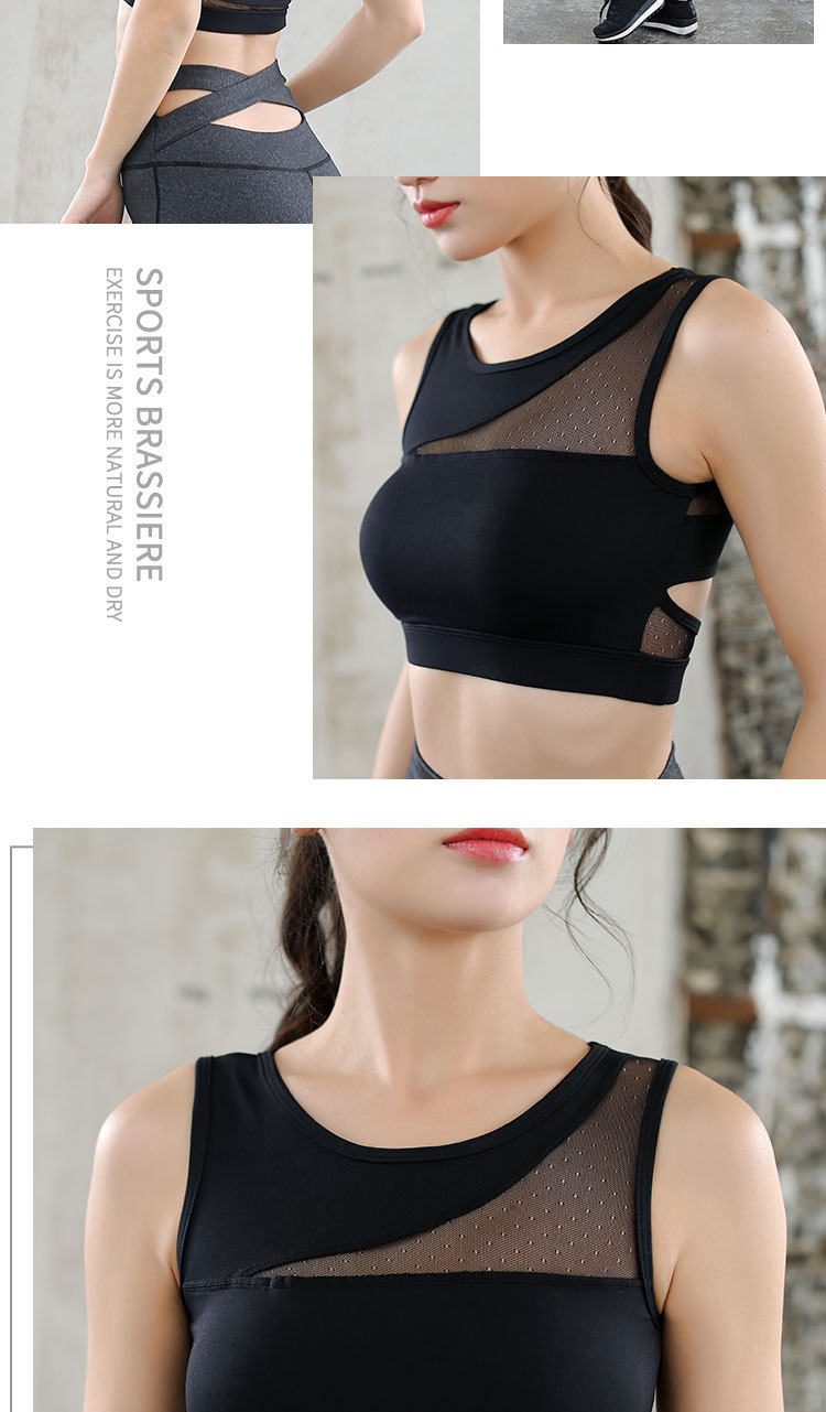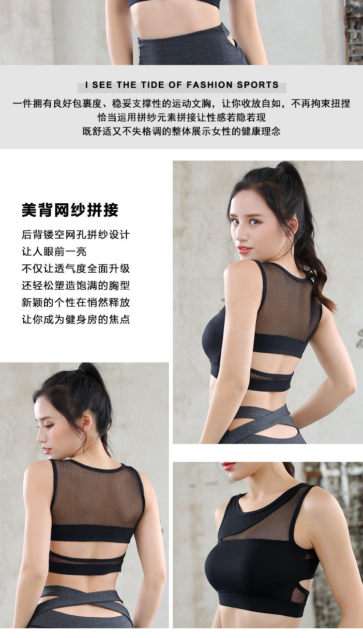 새로운 패션 메쉬 스포츠 코르셋 여성의 섹시한 아름다운 등 없음 스틸 링 충격 방지 스포츠 브라 속건 요가 브라