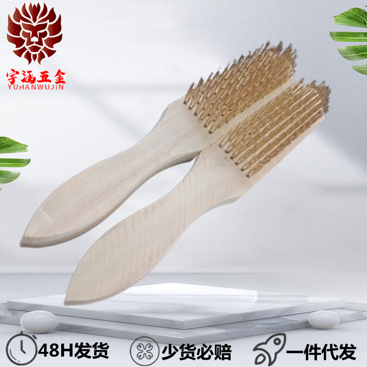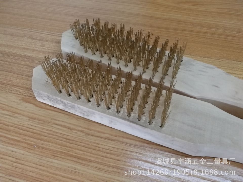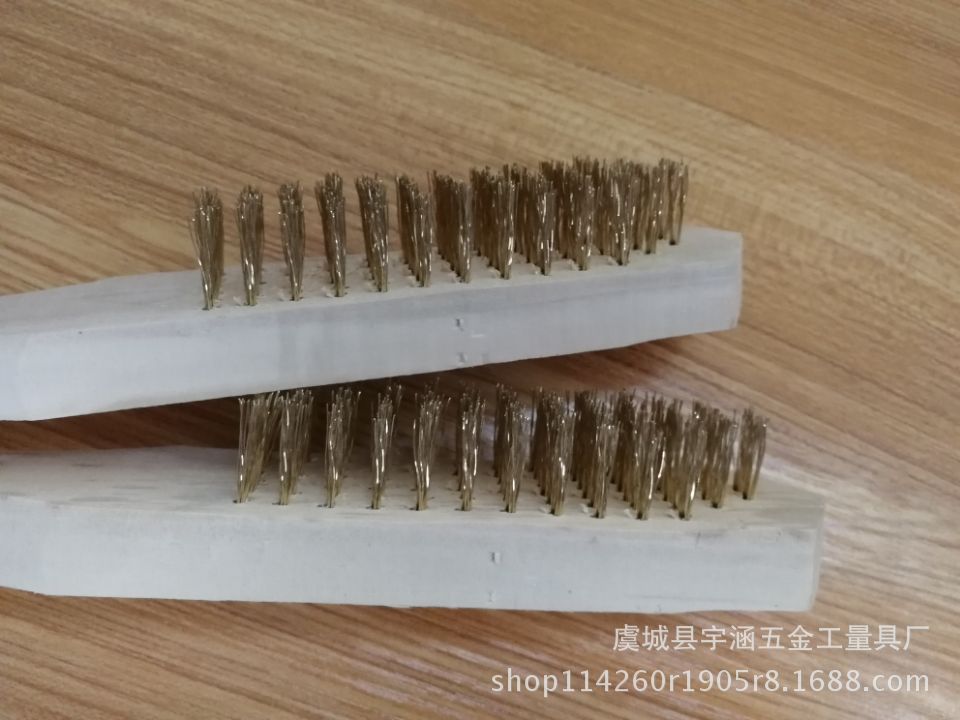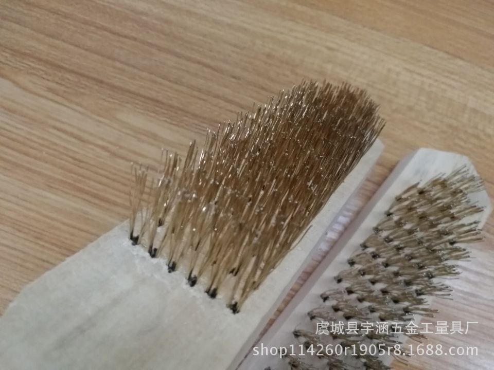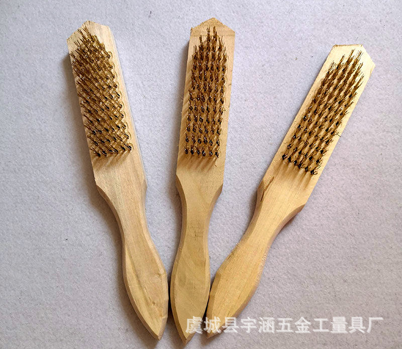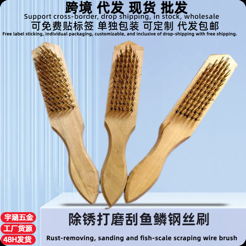 제조업체 도매 단단한 나무 손잡이가 있는 노란색 강철 와이어 브러시, 수동 녹 제거 도구, 생선 비늘 및 녹 제거 청소 브러시