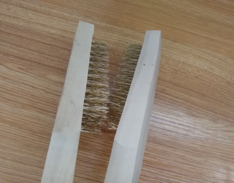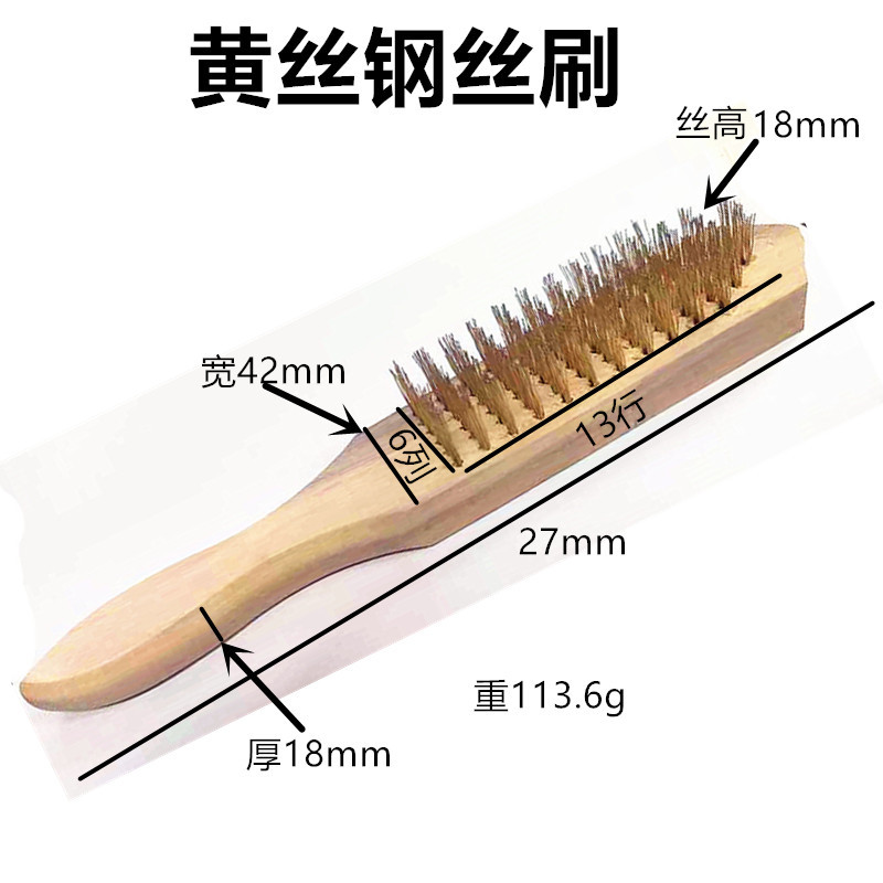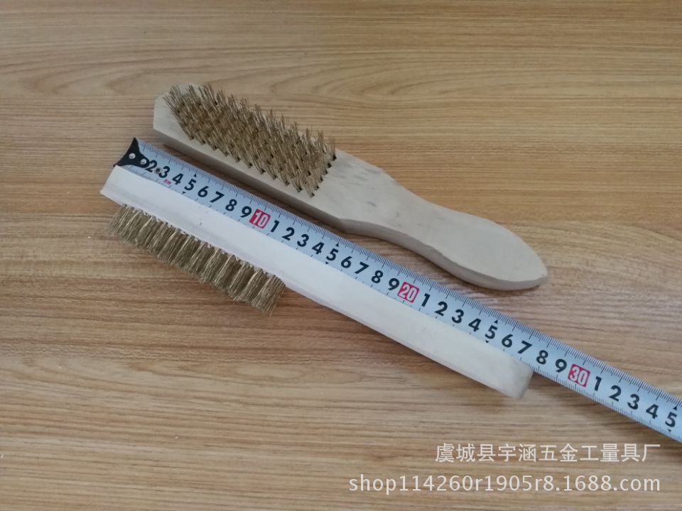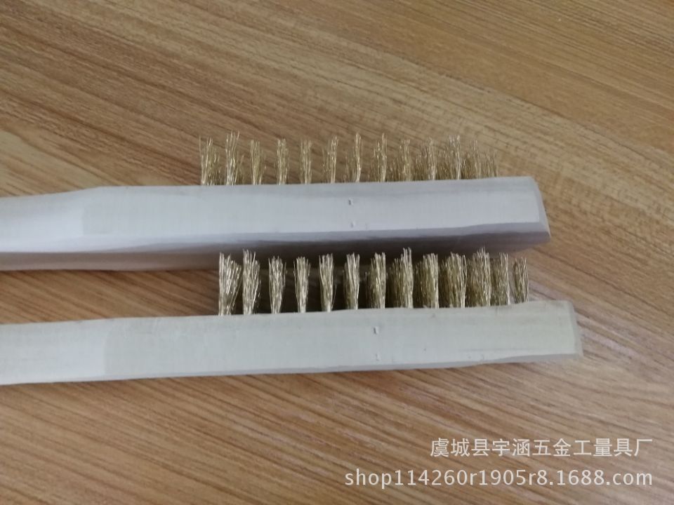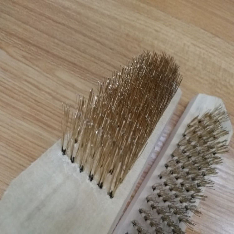 제조업체 도매 단단한 나무 손잡이가 있는 노란색 강철 와이어 브러시, 수동 녹 제거 도구, 생선 비늘 및 녹 제거 청소 브러시