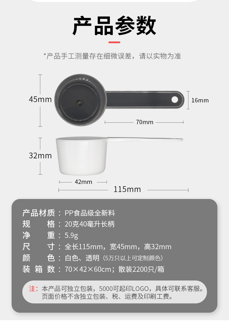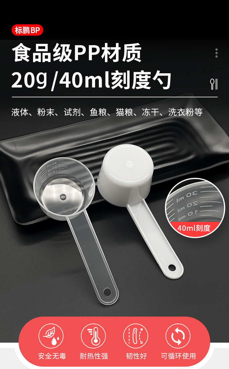 세탁세제 스푼 플라스틱 계량스푼 플라스틱 스푼 20g 40ml 애완동물 계량스푼 고정식량 스푼 베이킹 계량스푼 대용량