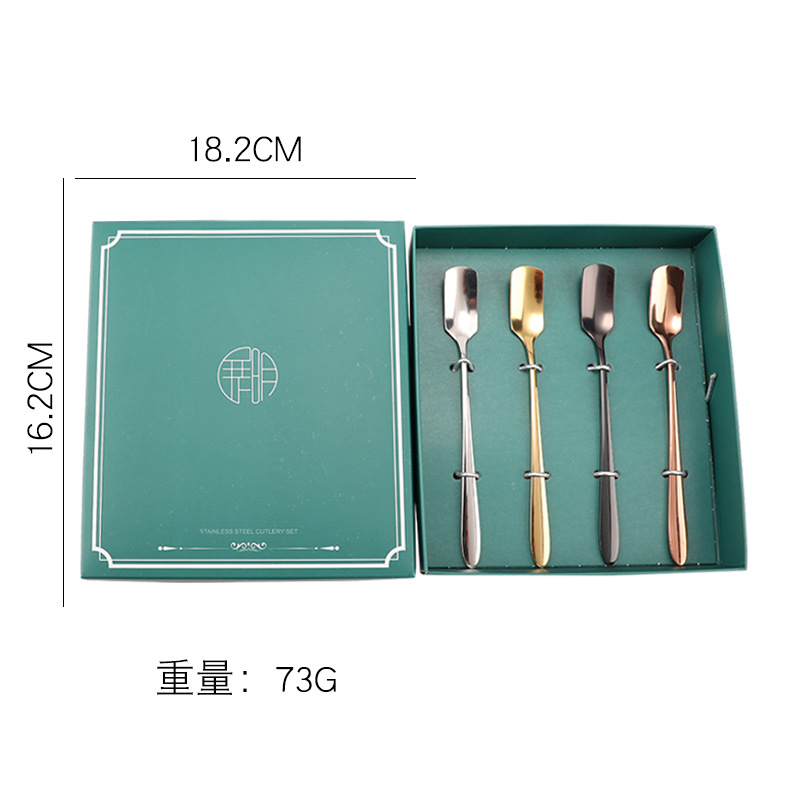 304 스테인레스 스틸 사각 커피 스푼 창조적 인 미니 밀크 티 믹싱 스푼 한국 금도금 작은 얼음 스푼