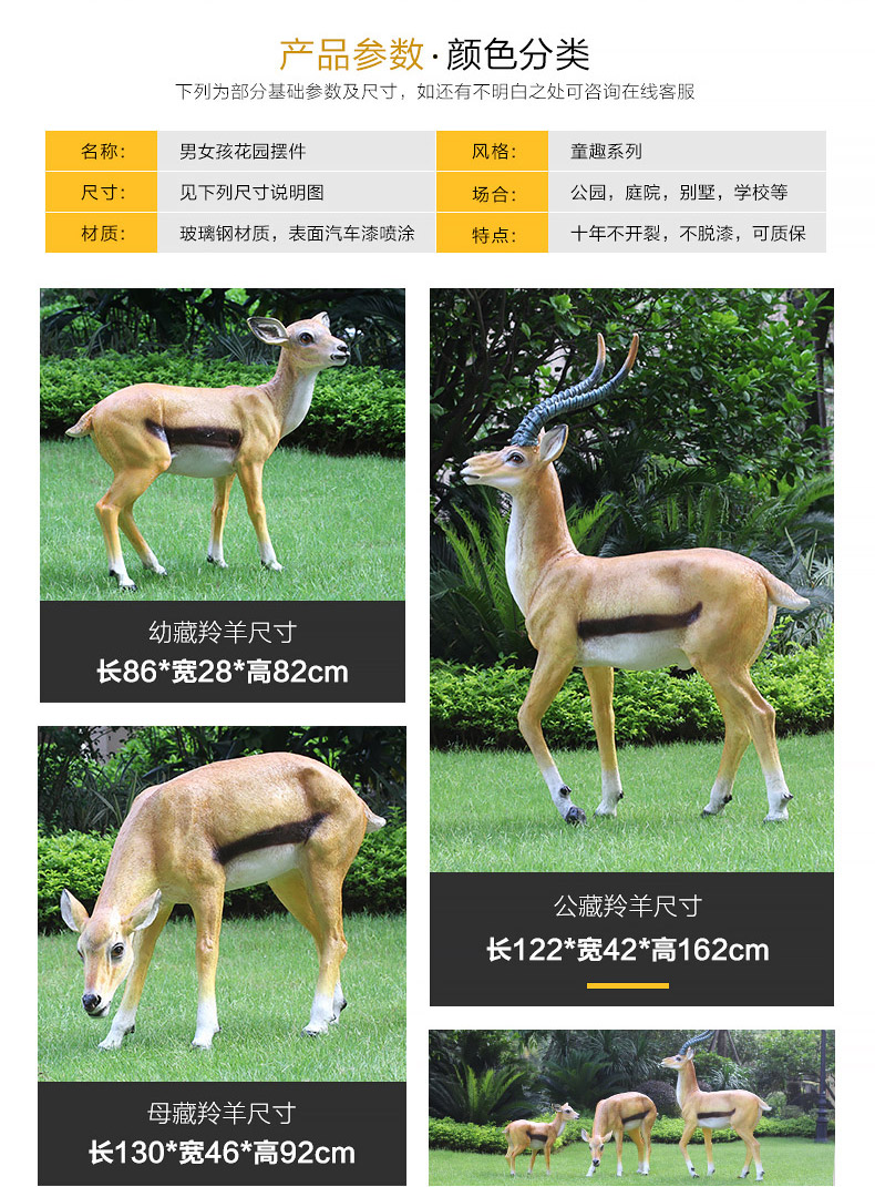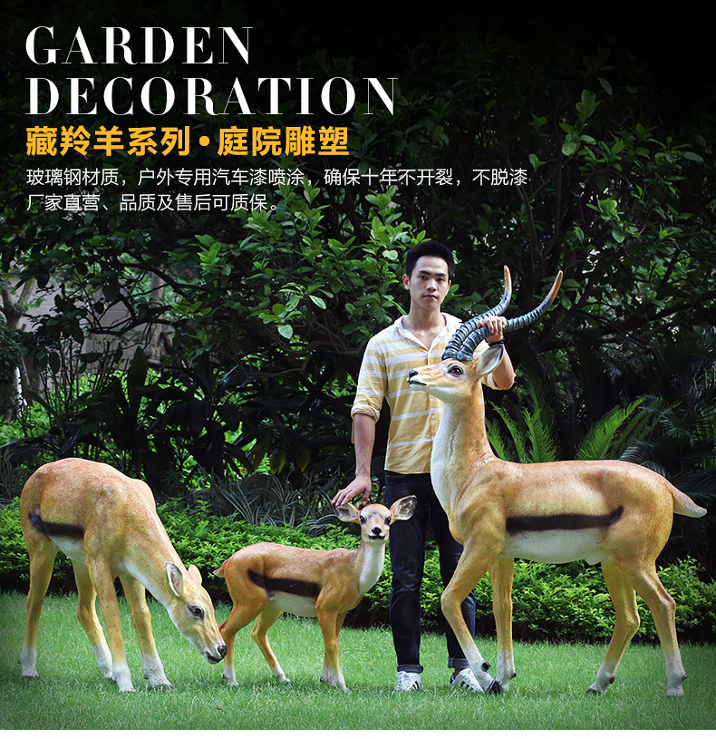 시뮬레이션 동물 티베트 영양 장식품 풍경 조각 공예 꽃 정원 안뜰 야외 장식 유리 섬유 강화 플라스틱 조각